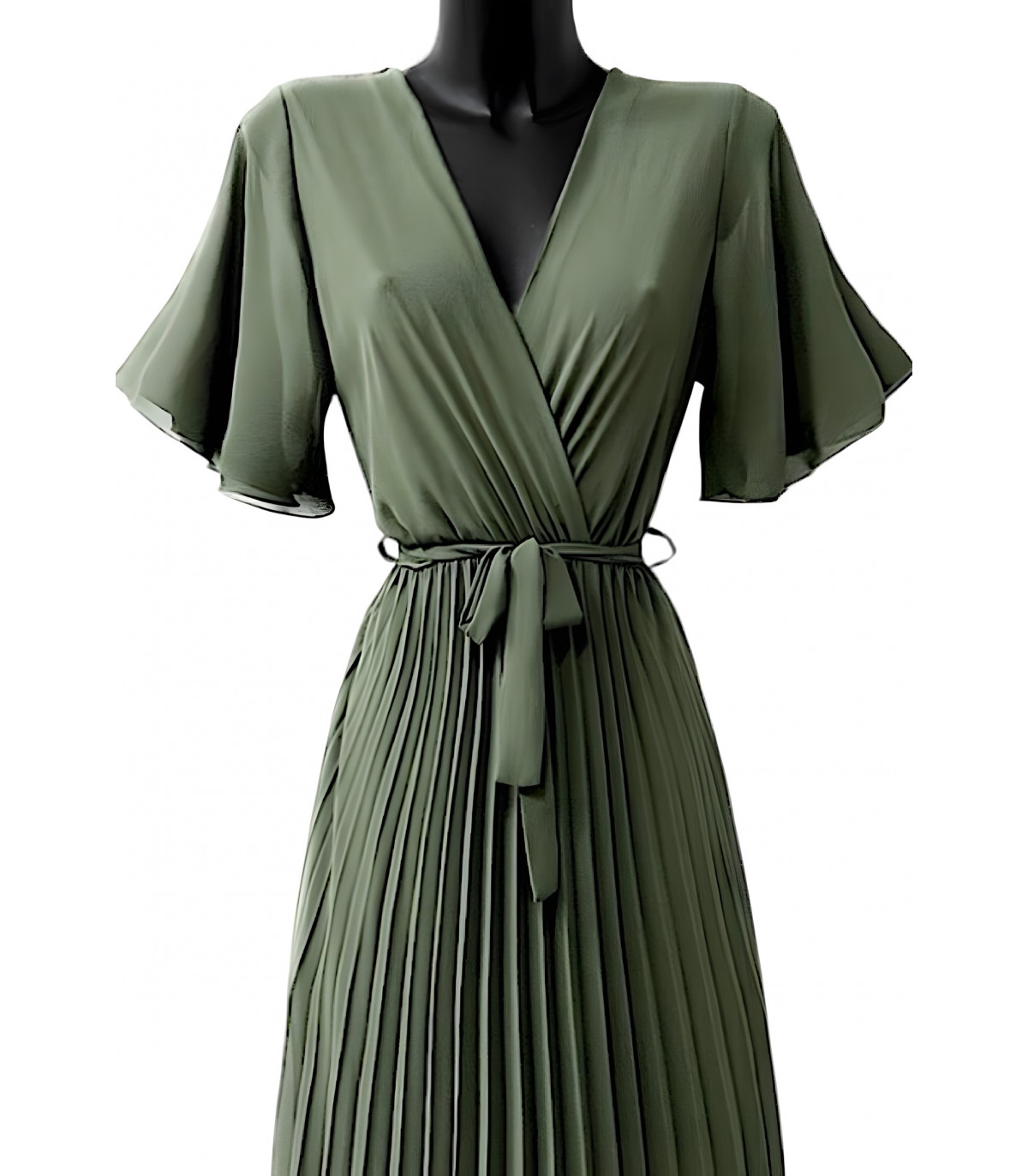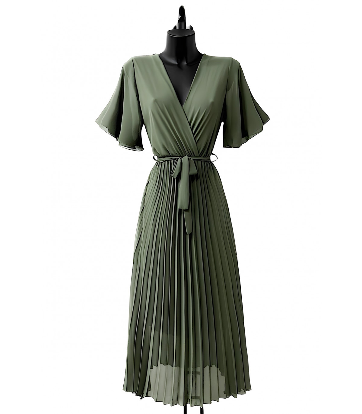 Khaki lyhythihainen pitkä vekkimekko vyönauhalla. Yksivärinen pitkä mekko, jossa on kauniit ilmavat lyhyet hihat ja pidempi vekkihelma, sopii erinomaisesti moneen eri tilanteeseen. Vekkimekko v-pääntiellä on erittäin naisellinen vaate, jossa voit tuntea olosi viehättäväksi. Tyylikäs mekko juhliin, treffeille ja muihin siistimpää pukeutumista vaativiin tilaisuuksiin. Khaki mekko on kaunis juhlamekko häihin ja muihin juhliin.