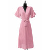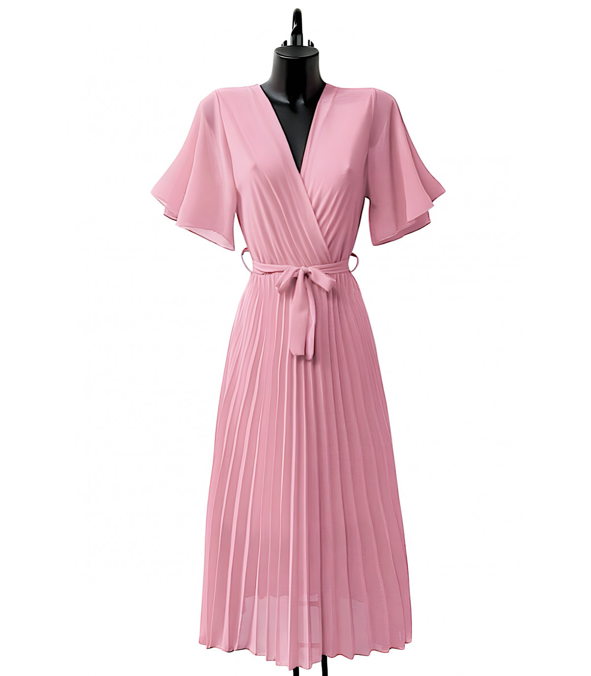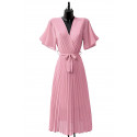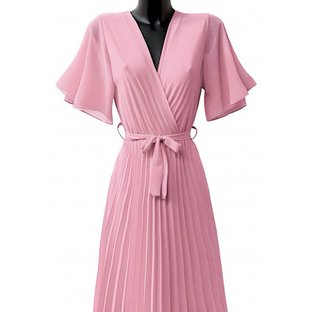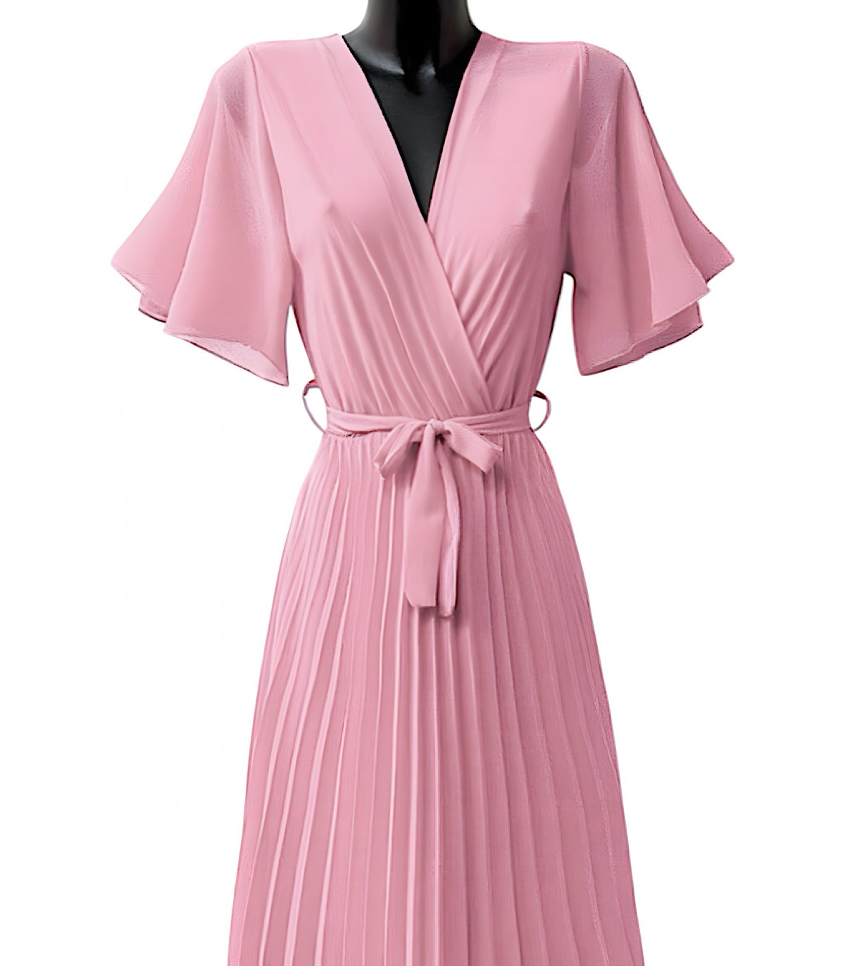 Vaaleanpunainen lyhythihainen pitkä vekkimekko vyönauhalla. Yksivärinen pitkä mekko, jossa on kauniit ilmavat lyhyet hihat ja pidempi vekkihelma, sopii erinomaisesti moneen eri tilanteeseen. Vekkimekko v-pääntiellä on erittäin naisellinen vaate, jossa voit tuntea olosi viehättäväksi. Tyylikäs mekko juhliin, treffeille ja muihin siistimpää pukeutumista vaativiin tilaisuuksiin. Vaaleanpunainen mekko on kaunis juhlamekko häihin ja muihin juhliin.