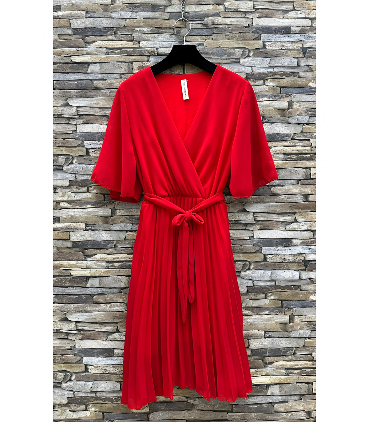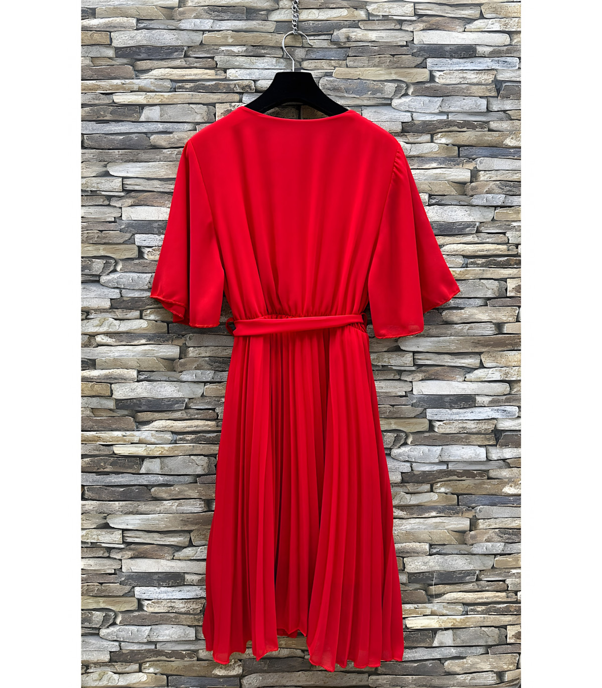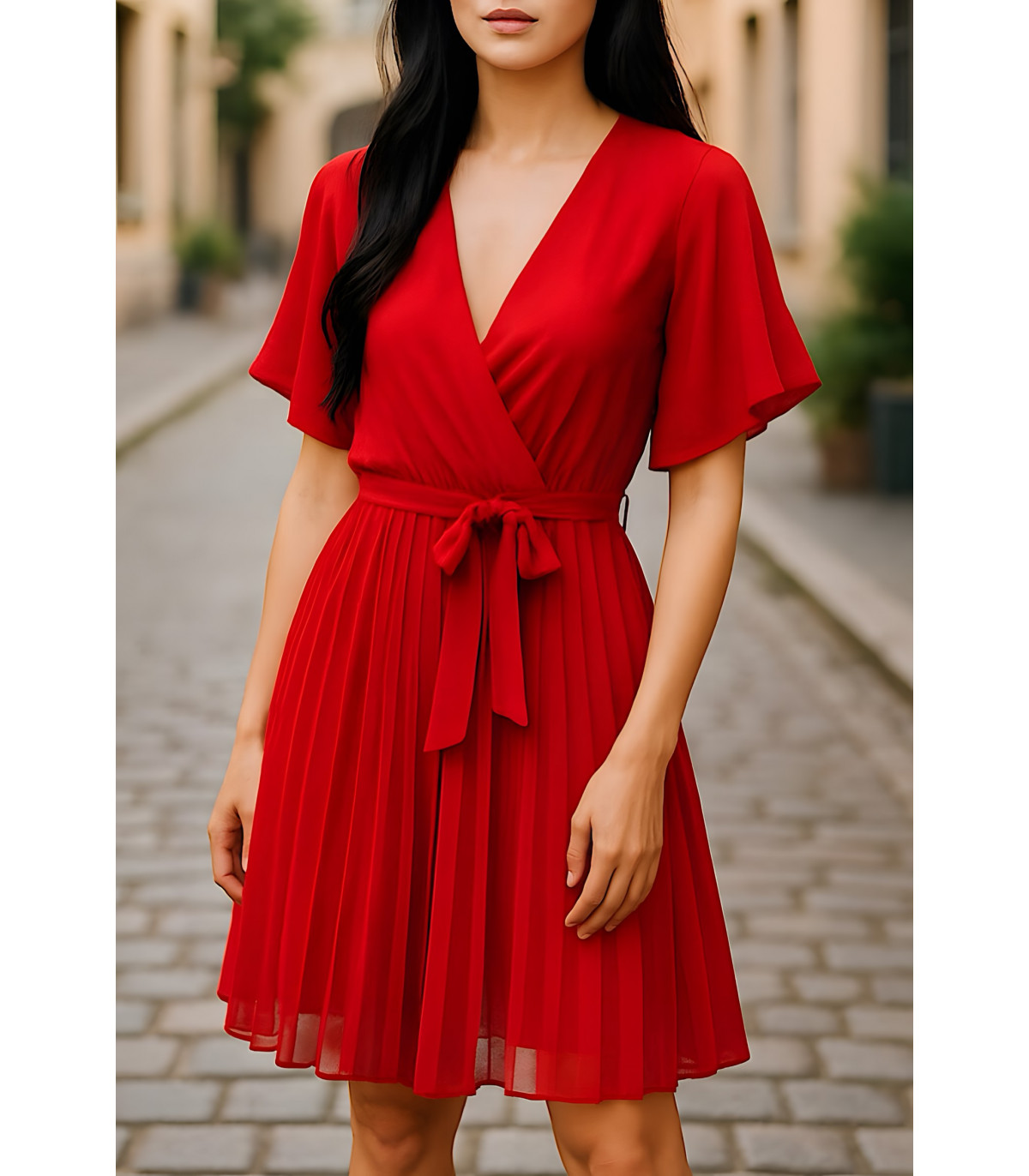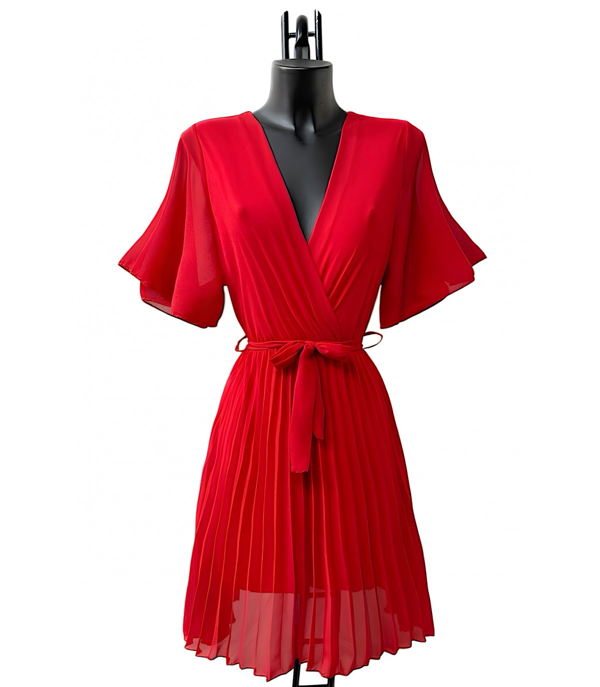 Punainen lyhythihainen vekkimekko vyönauhalla. Yksivärinen mekko, jossa on kauniit ilmavat lyhyet hihat ja vekkihelma, sopii erinomaisesti moneen eri tilanteeseen. Vekkimekko v-pääntiellä on erittäin naisellinen vaate, jossa voit tuntea olosi viehättäväksi. Tyylikäs mekko juhliin, treffeille ja muihin siistimpää pukeutumista vaativiin tilaisuuksiin. Täydellinen punainen juhlamekko jouluun ja pikkujouluihin.