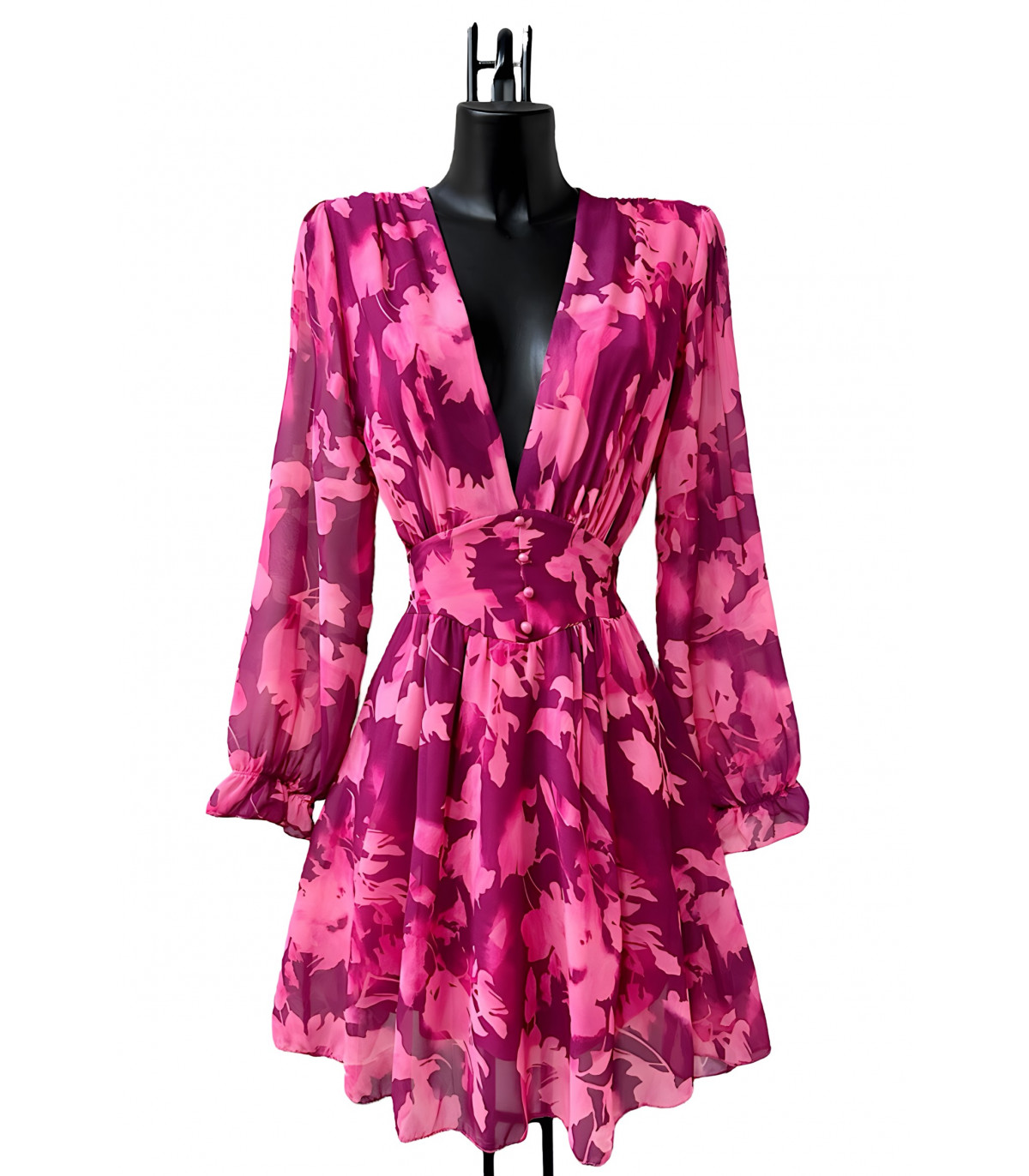 Upea mauve pitkähihainen kukkakuvioinen mekko kauniilla yksityiskohdilla. Naisellinen kukkamekko v-pääntiellä on täydellinen treffimekko, jossa voit tuntea olosi itsevarmaksi ja kauniiksi. Ihana pitkähihainen kukkamekko imartelee naisellisia muotojasi tyylikkäällä tavalla. Jos syvään uurrettu v-kaula-aukko tuntuu omaan tyyliisi liian avaralta, laita alle esimerkiksi pitsikoristeinen alustoppi. Kaunis kukallinen mekko sopii loistavasti erilaisiin juhliin ja siistimpää pukeutumista vaativiin tilaisuuksiin. Stailaa kaunis kukkamekko rentoon tyyliin esimerkiksi nahkatakin ja maihareiden kanssa. Monikäyttöinen, ajaton vaate on oiva lisä vaatekaappiin, sillä se on myös kaunis juhlamekko erilaisiin juhliin. Paksuilla sukkahousuilla tai leggingseillä saat mekon käyttöön myös viileämmillä keleillä.