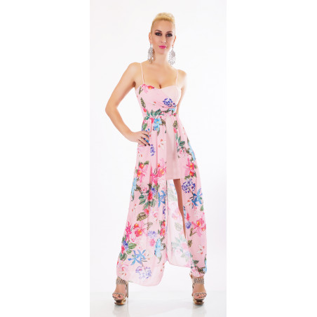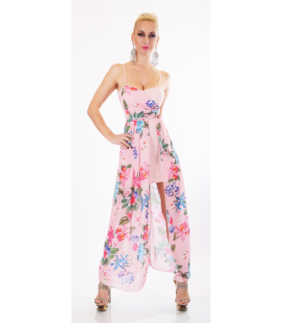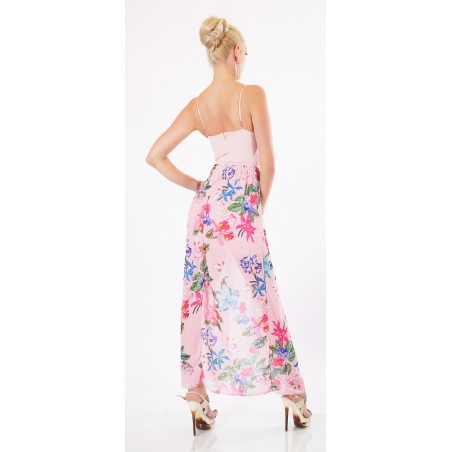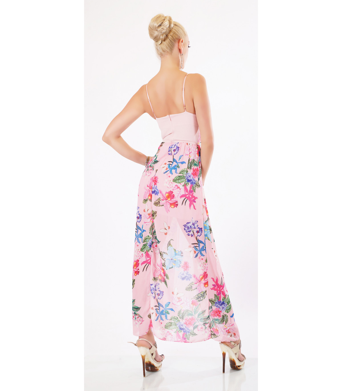 Vaaleanpunainen kukkakuvioinen high low -mekko