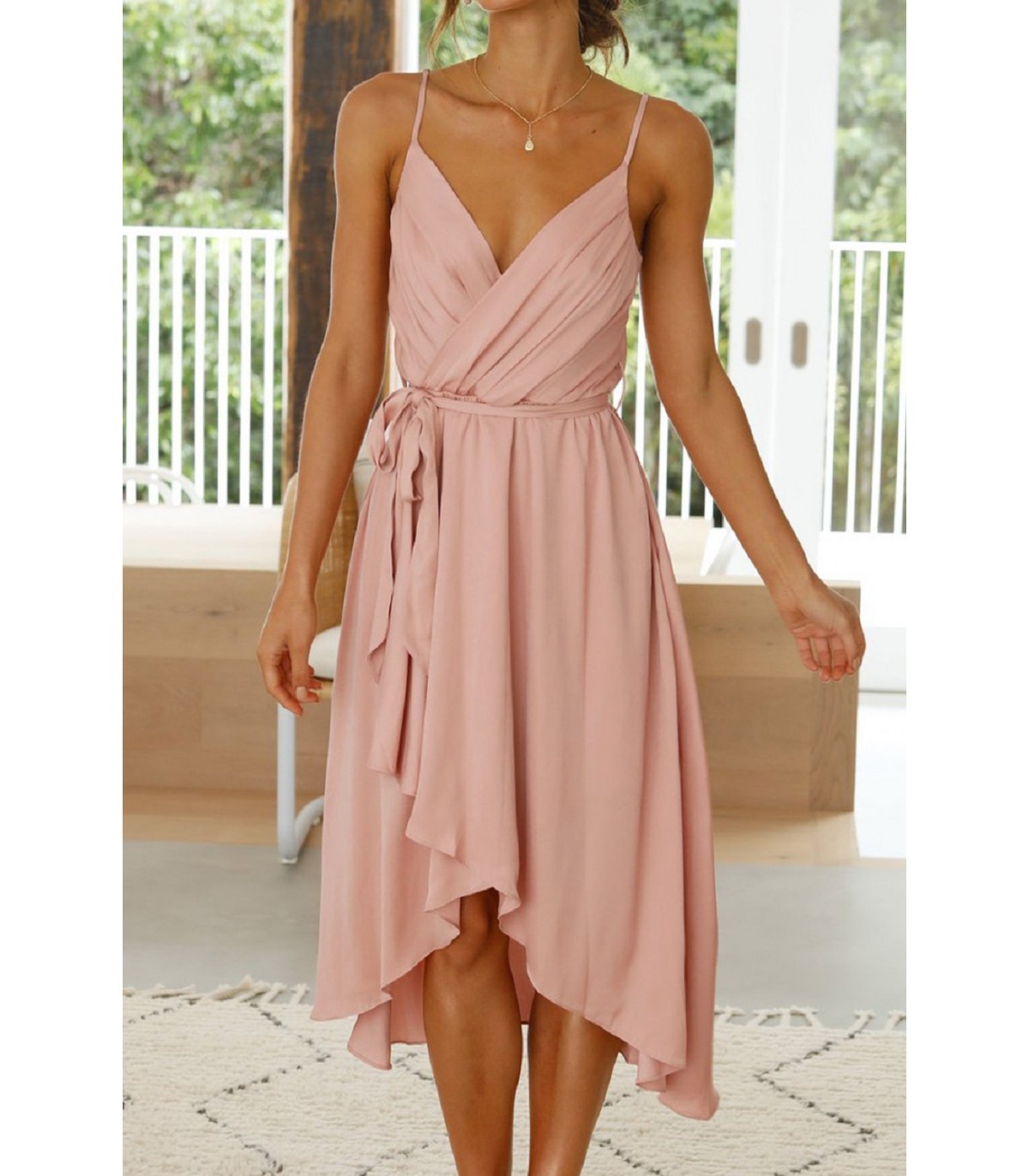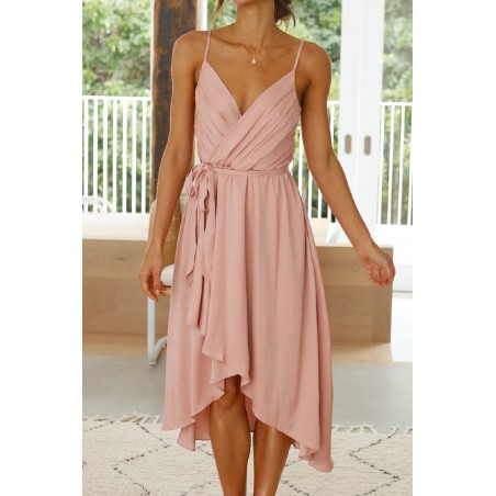 Vaaleanpunainen wrap-look high low v-mekko [LÖYTÖ]