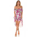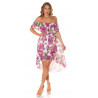 Violetti ruusukuvioinen off-shoulder high low -mekko ketjuvyöllä
