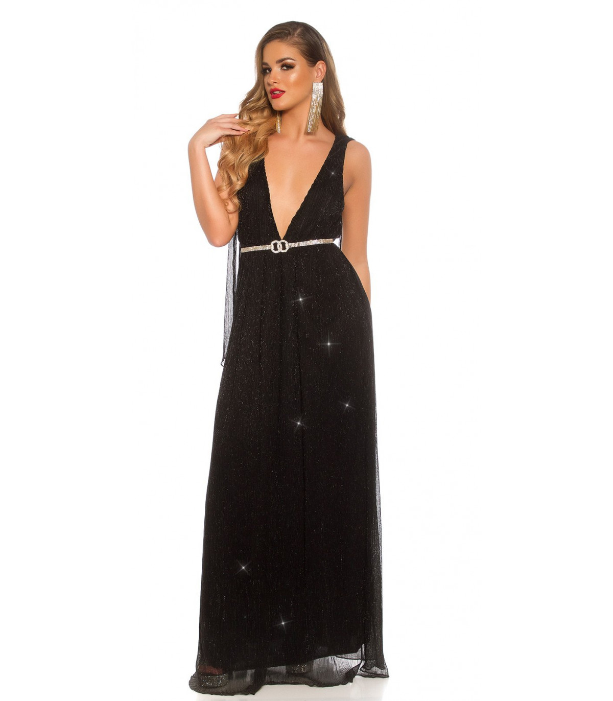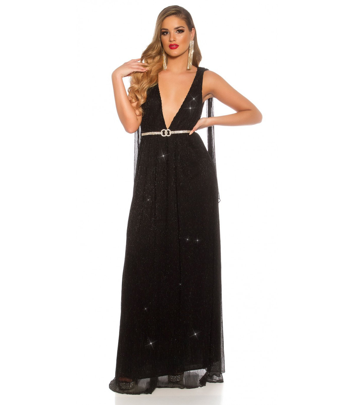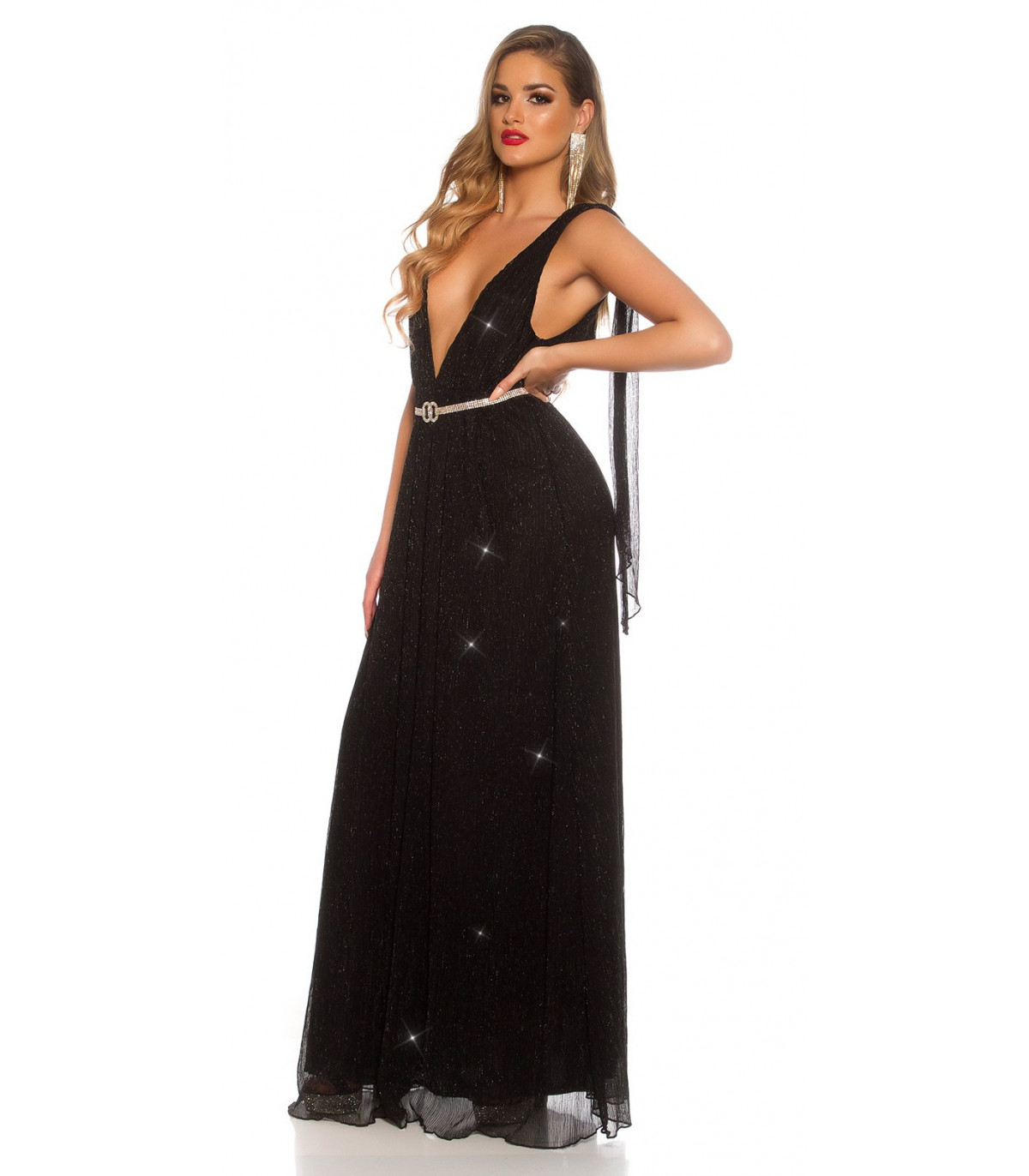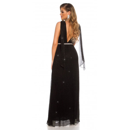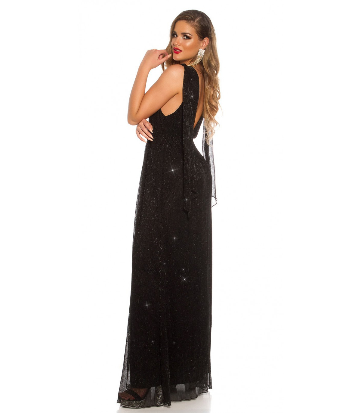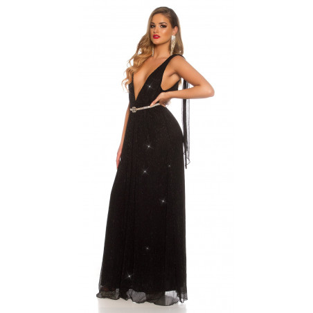 Koucla musta iltapuku glitterillä ja liehuksilla