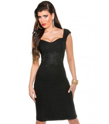Näyttävä musta koristekirjailtu juhlamekko/treffimekko.