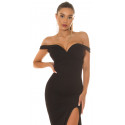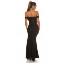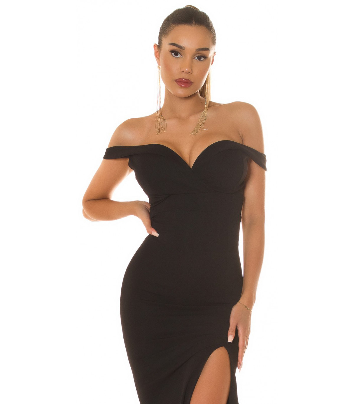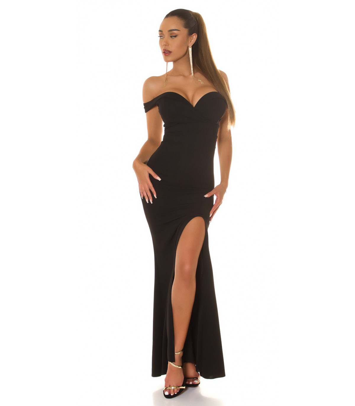 Koucla musta off-shoulder pitkä juhlamekko halkiolla