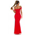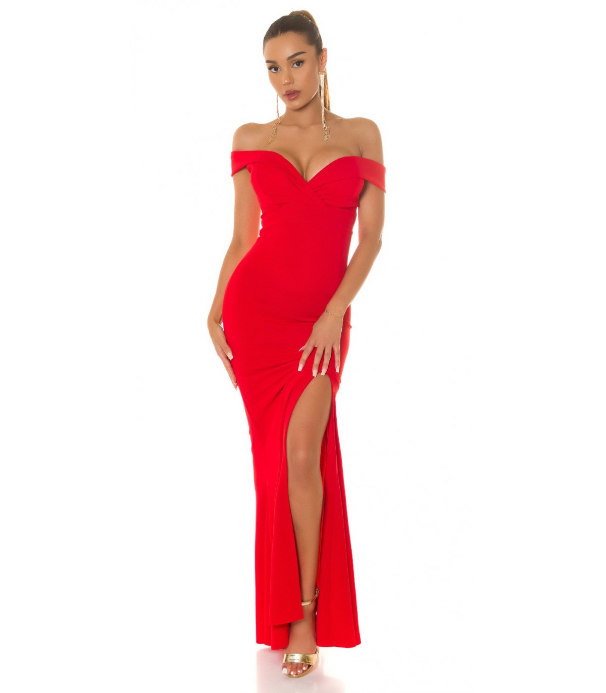 Koucla punainen off-shoulder pitkä juhlamekko halkiolla