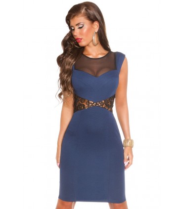 Koucla sininen mesh ja pitsikoristeinen mekko