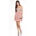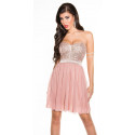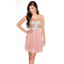 Koucla vaaleanpunainen olkaimeton paljettikoristeinen juhlamekko