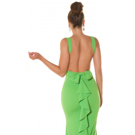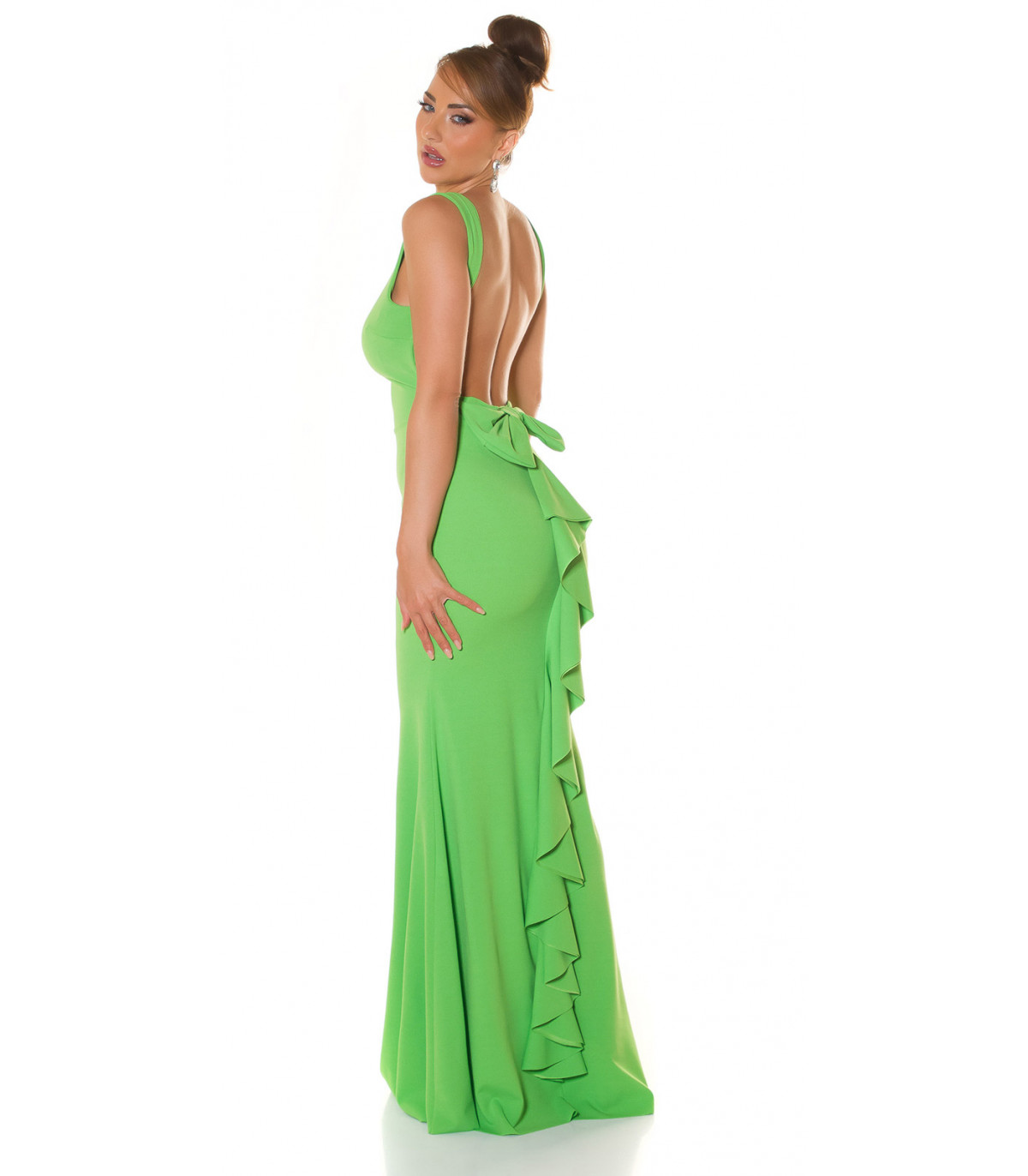 Koucla vihreä pitkä juhlamekko rusettiröyhelöllä