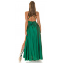 Koucla vihreä pitkä satiinilook v-juhlamekko paljeteilla