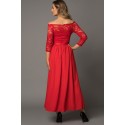 Punainen pitkä juhlamekko pitsillä ja halkiolla [LÖYTÖ]