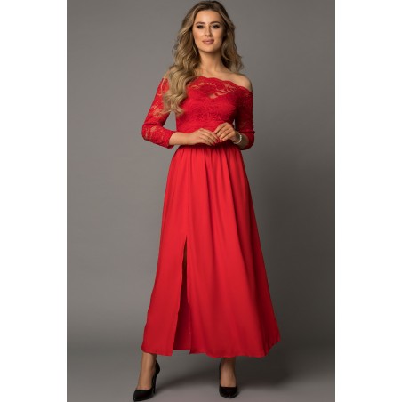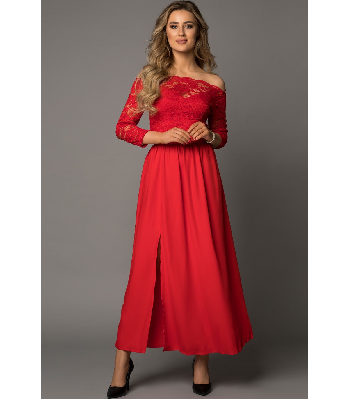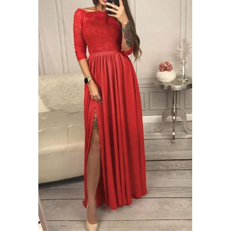 Plus de details Valittu koko loppu varastostaPunainen pitkä juhlamekko pitsillä ja halkiolla [LÖYTÖ]