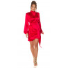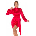 Punainen pitkähihainen satiinilook mekko liehuksella