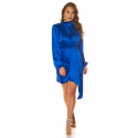 Sininen pitkähihainen satiinilook mekko liehuksella