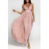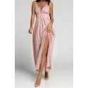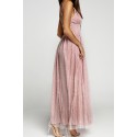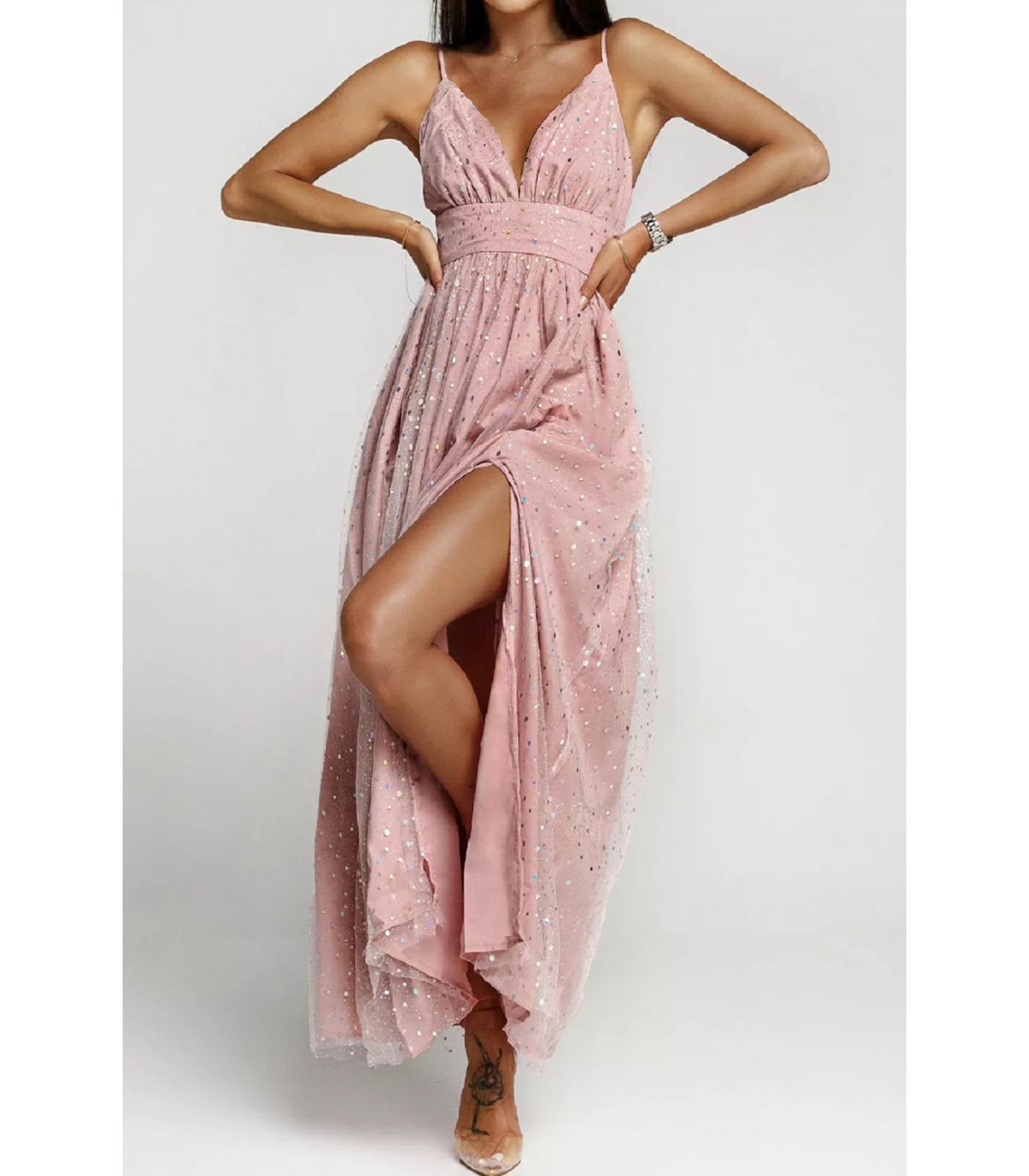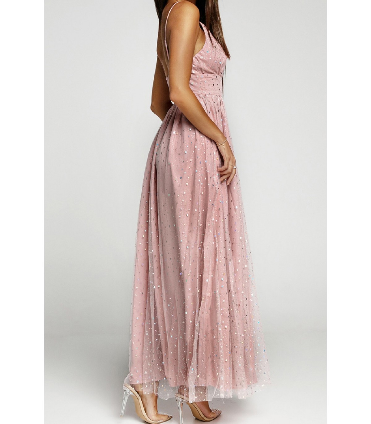 Vaaleanpunainen pitkä v-glitterjuhlamekko