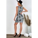 Harmaa lehtikuvioinen solmukoristeinen wrap-look mekko halkiolla