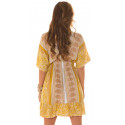 Koucla keltainen printtikuvioinen lyhythihainen v-mekko vyötäröresorilla