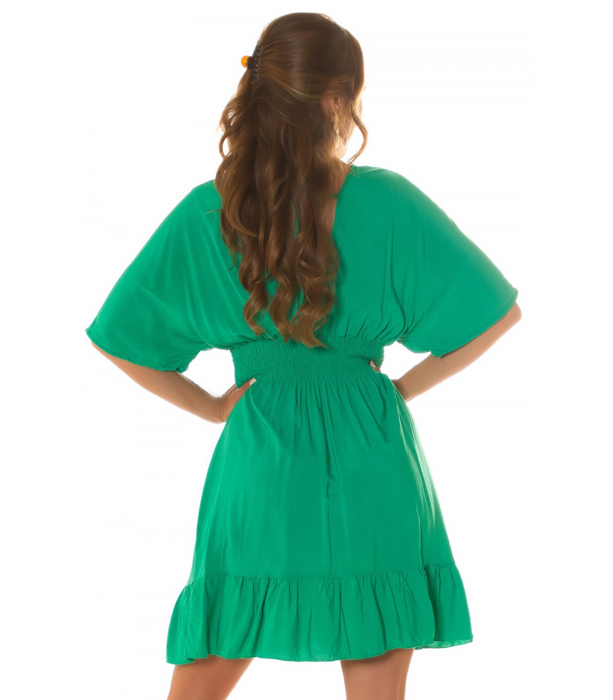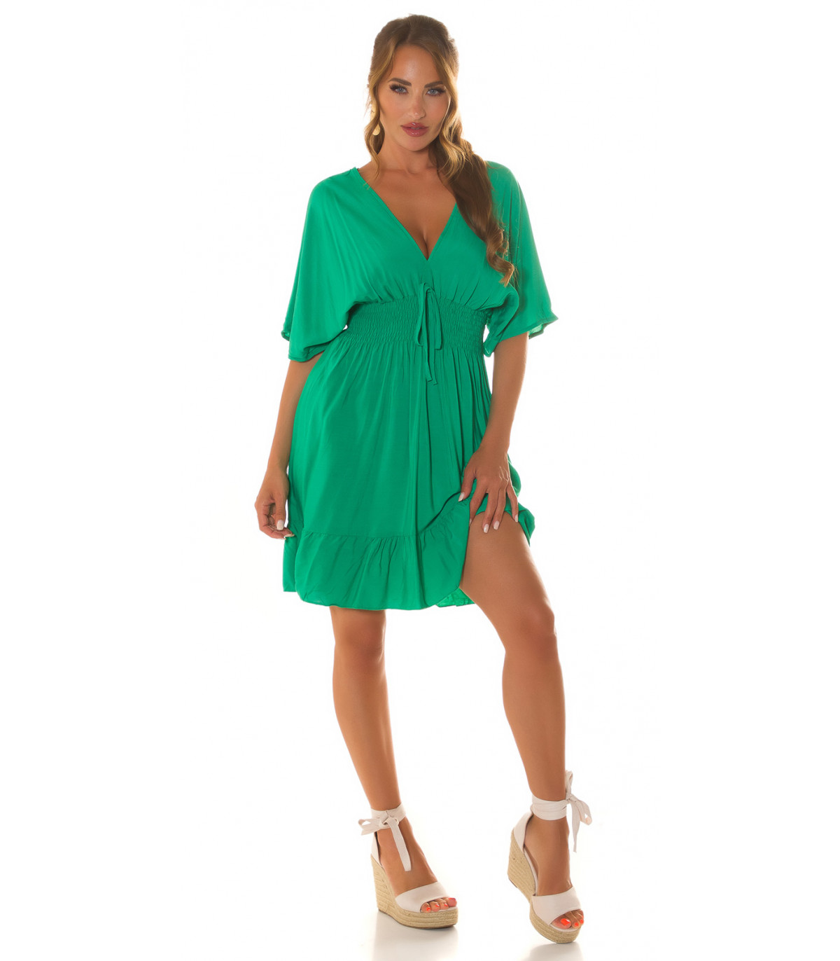 Koucla vihreä lyhythihainen v-mekko vyötäröresorilla