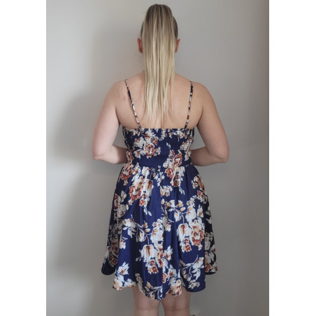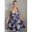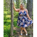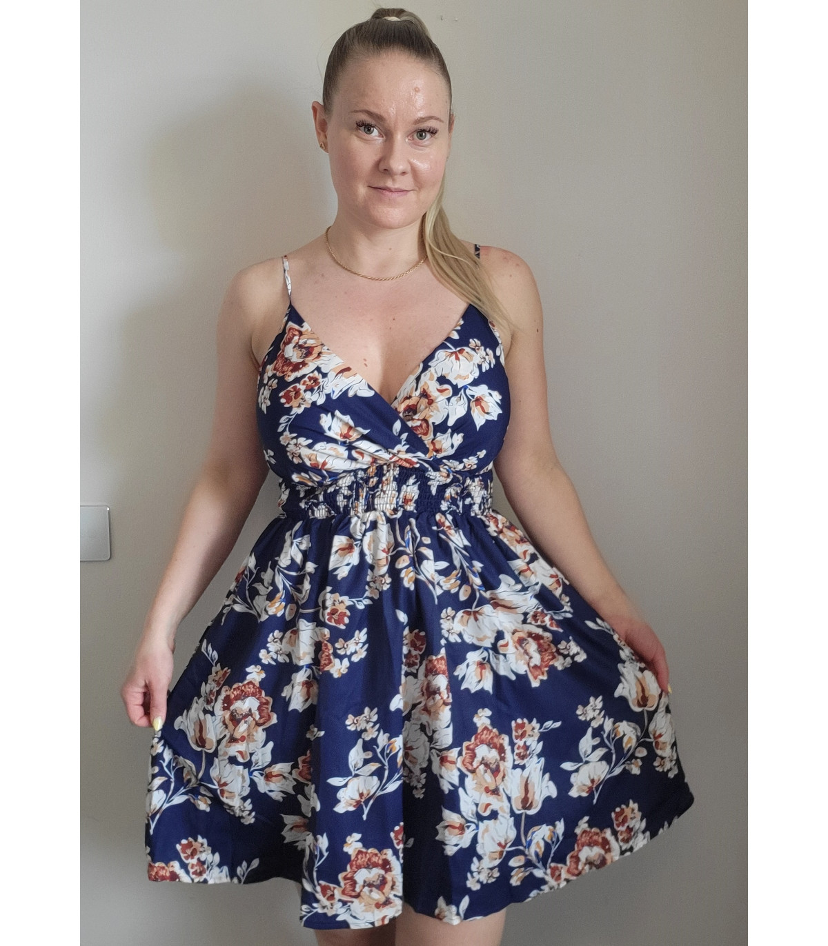 Tummansininen kukkakuvioinen wrap-look v-mekko
