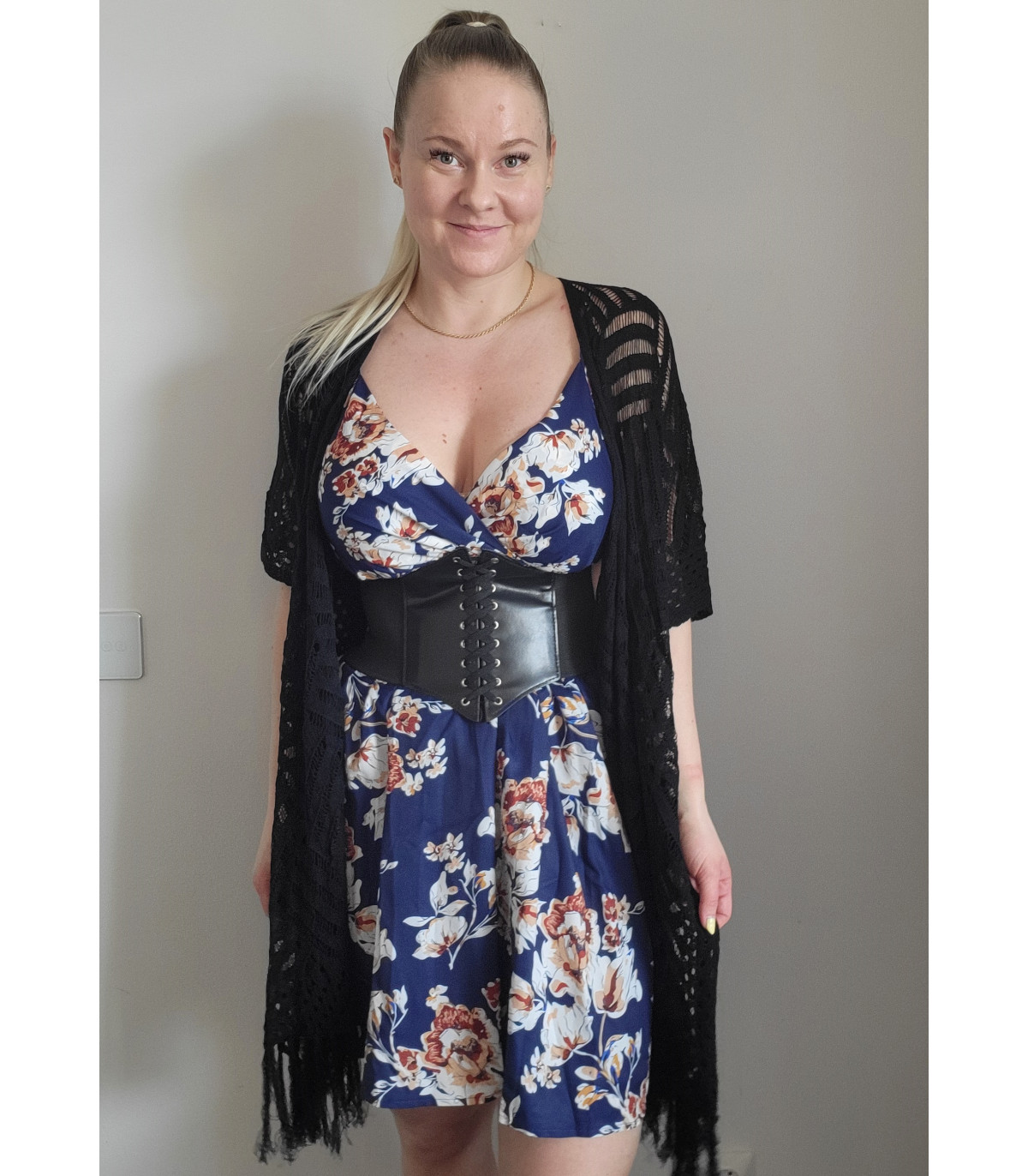 Kaunis, muotoja korostava kevyt mekko. Sopiva koko XL (käytän vaihtelevasti kokoja 46-50), vyötärökaistale ja yläselän osuus joustavat.