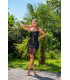 Koucla musta silkkilook nyöriselkäinen mekko pitsillä