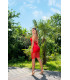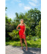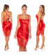Koucla punainen silkkilook nyöriselkäinen mekko pitsillä