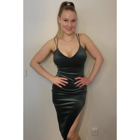 Koucla vihreä v-samettilook midimekko halkiolla
