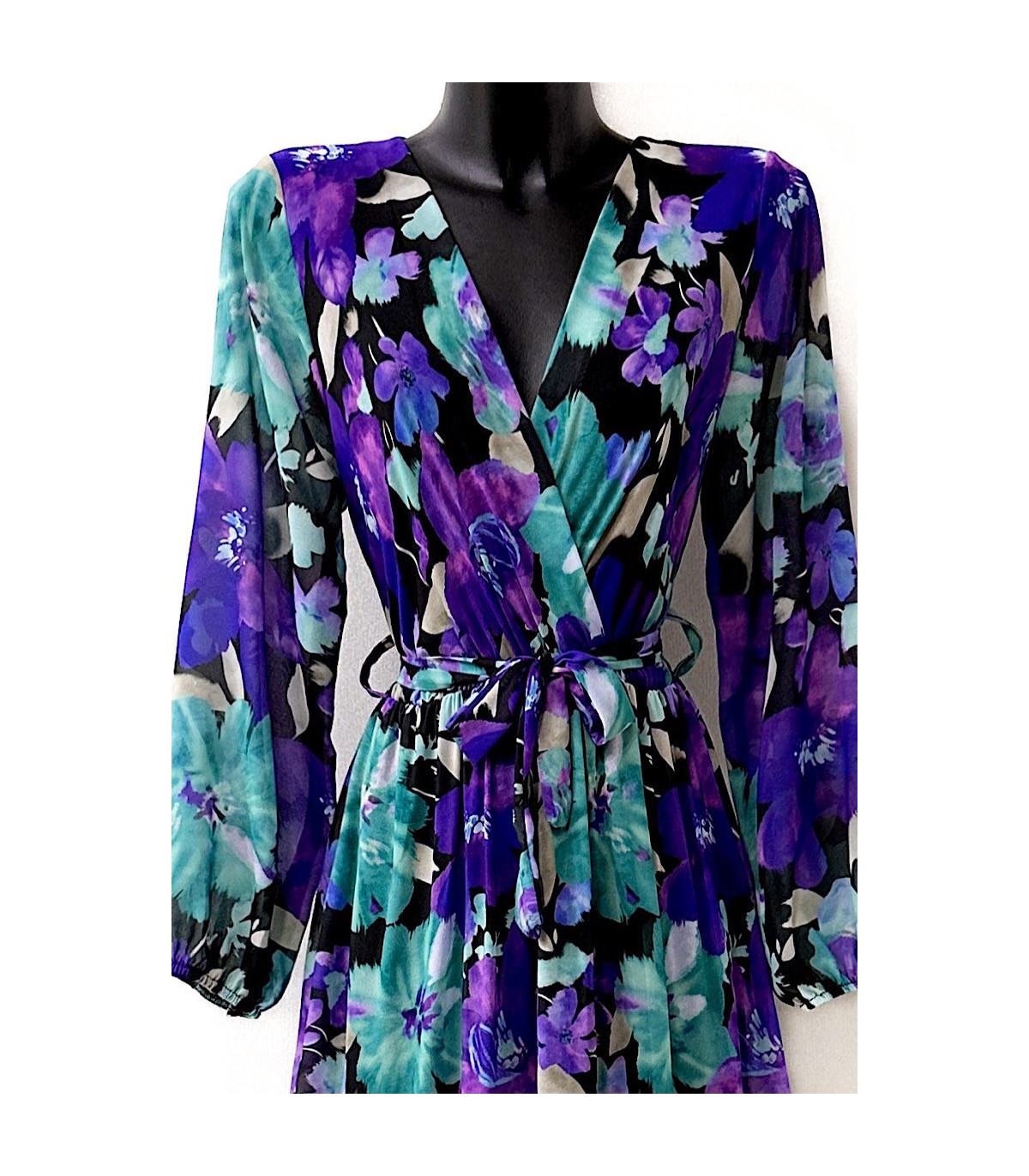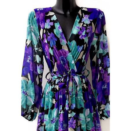 Elle Style Aurora turkoosi pitkähihainen kukkakuvioinen maksimekko