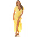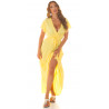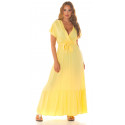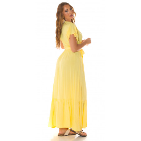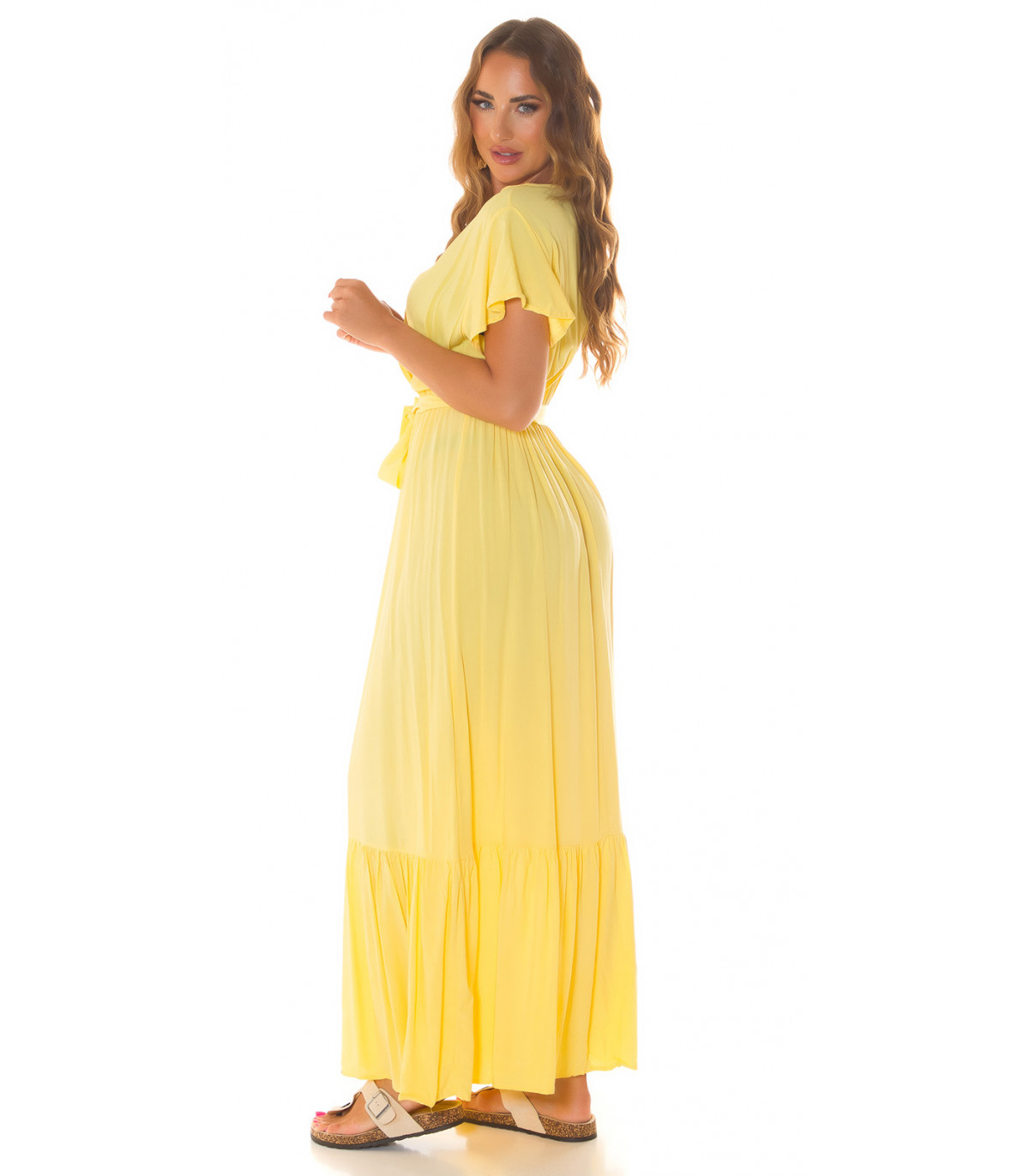 Koucla keltainen lyhythihainen v-maksimekko vyöllä