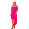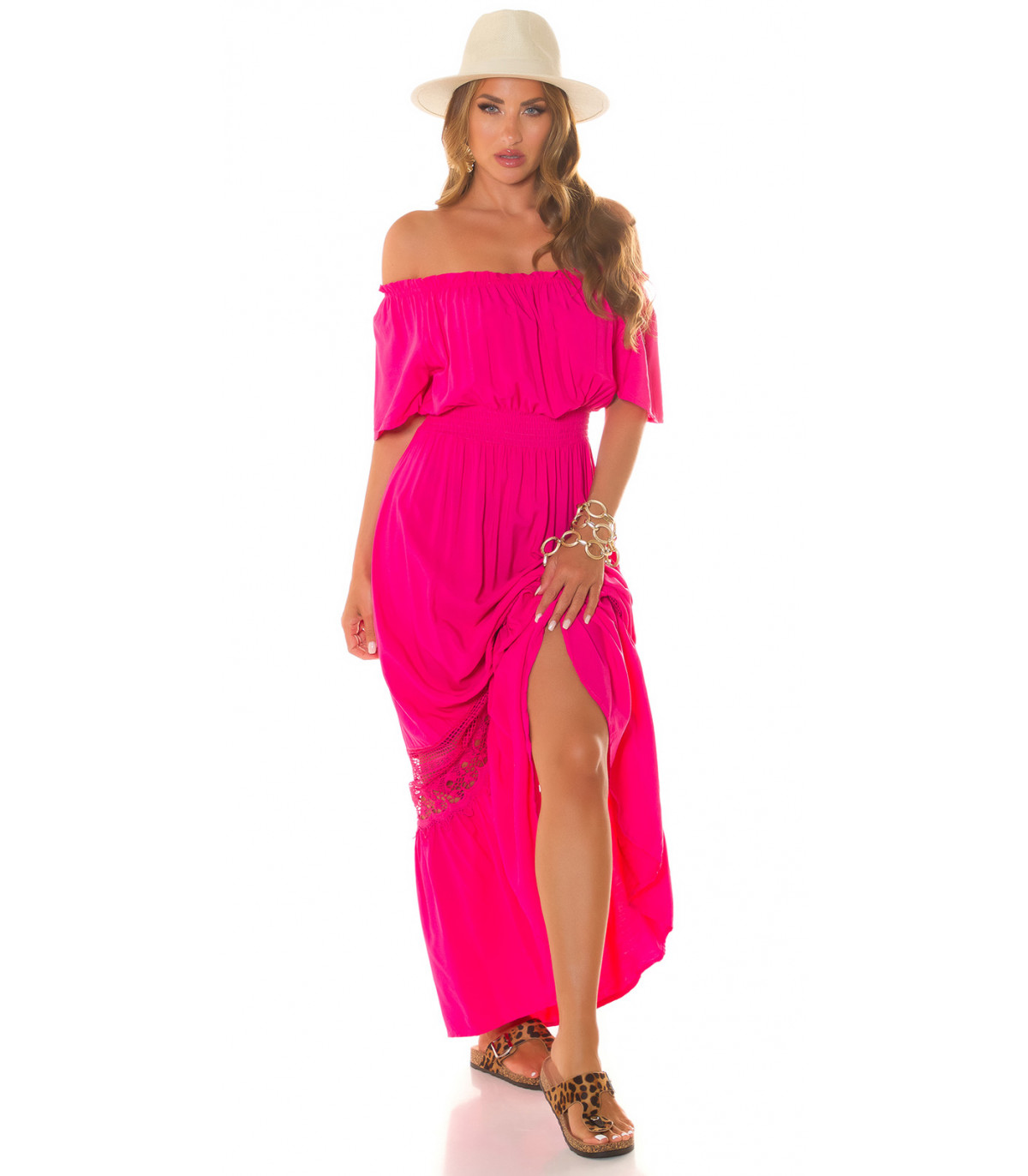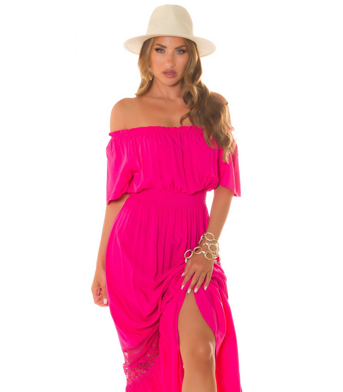 Koucla pinkki off-shoulder maksimekko koristekirjailulla helmalla
