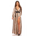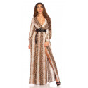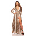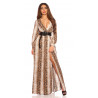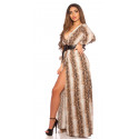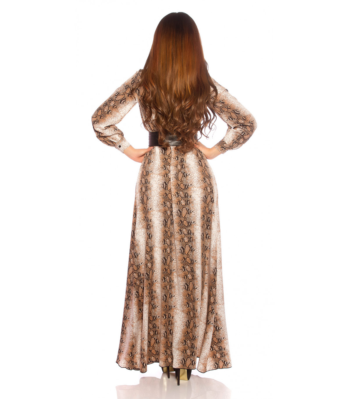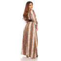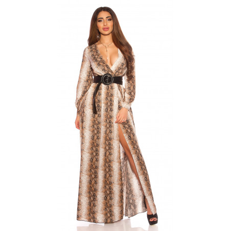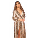 Koucla pitkähihainen käärmekuvioinen v-maksimekko halkiolla