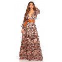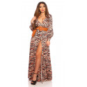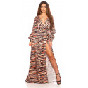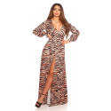 Koucla pitkähihainen seeprakuvioinen v-maksimekko halkiolla