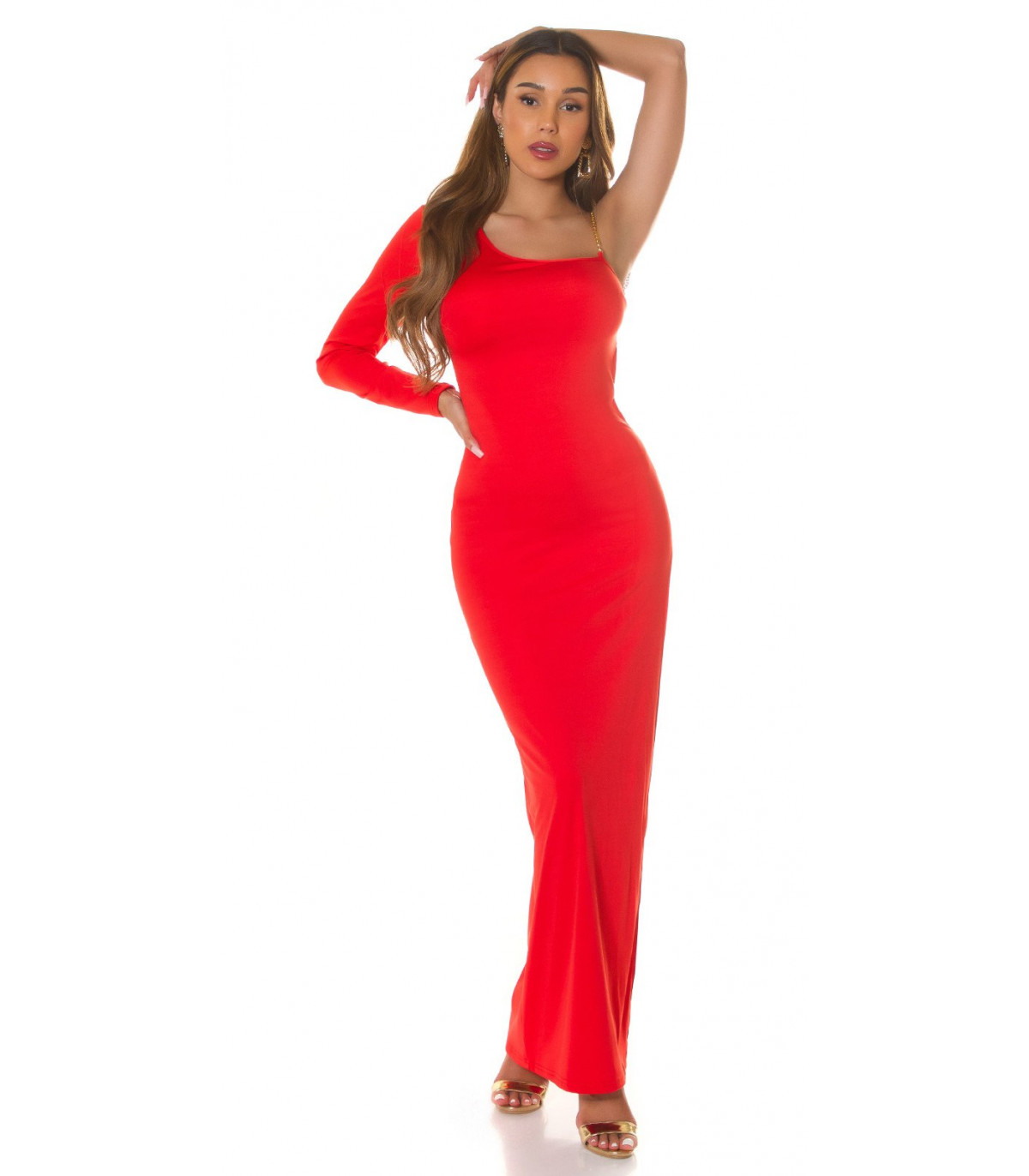 Koucla punainen pitkä mekko ketjuolkaimella ja halkiolla