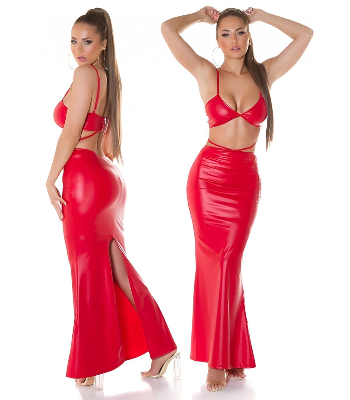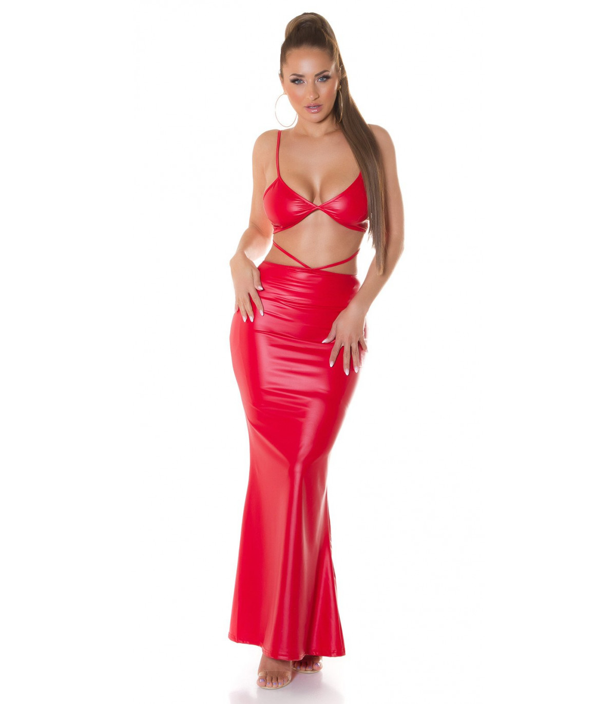 Koucla punainen tekonahkainen maksimekko XL-halkiolla