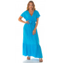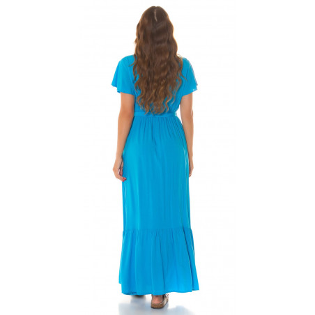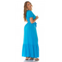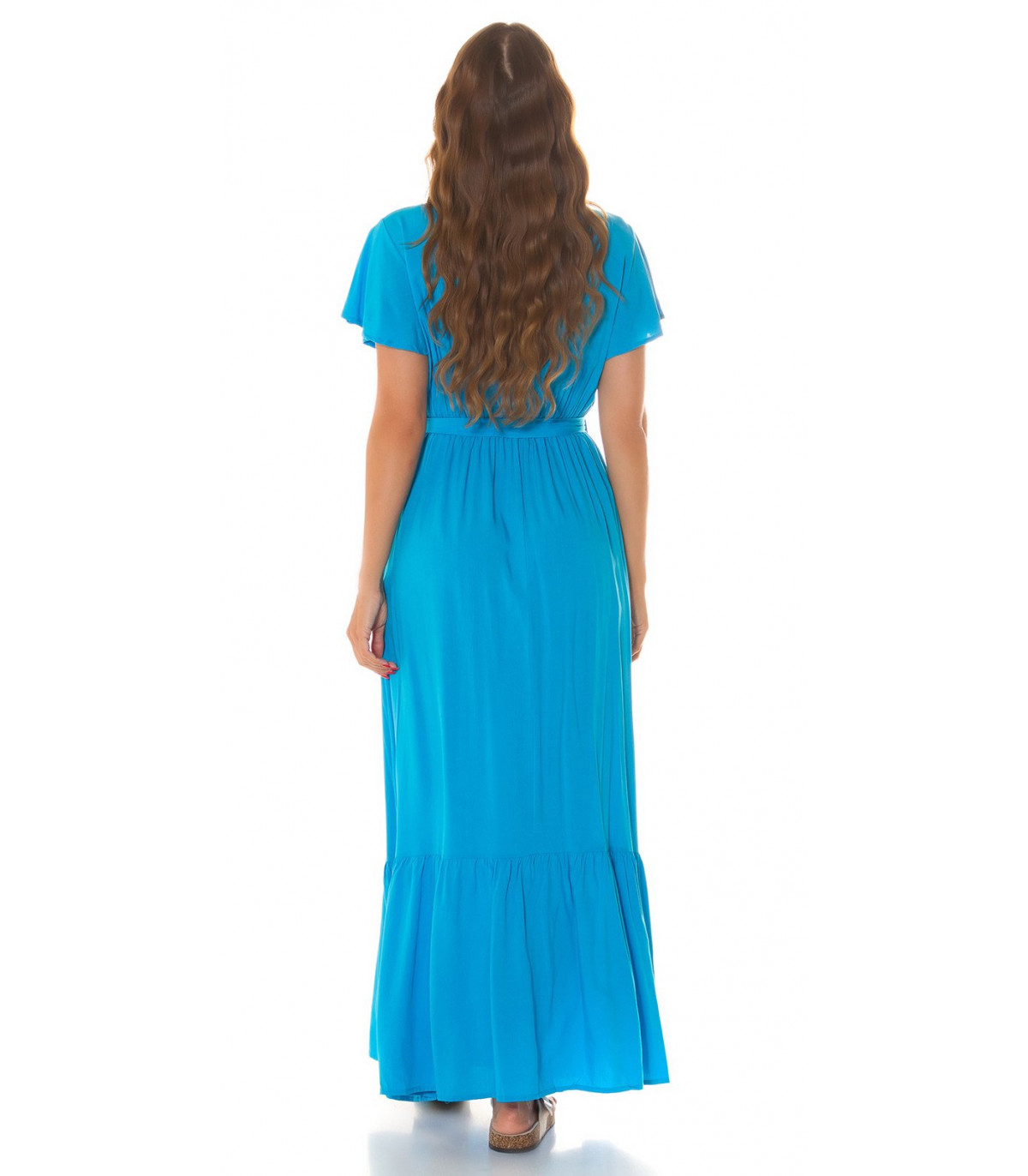 Koucla turkoosi lyhythihainen v-maksimekko vyöllä