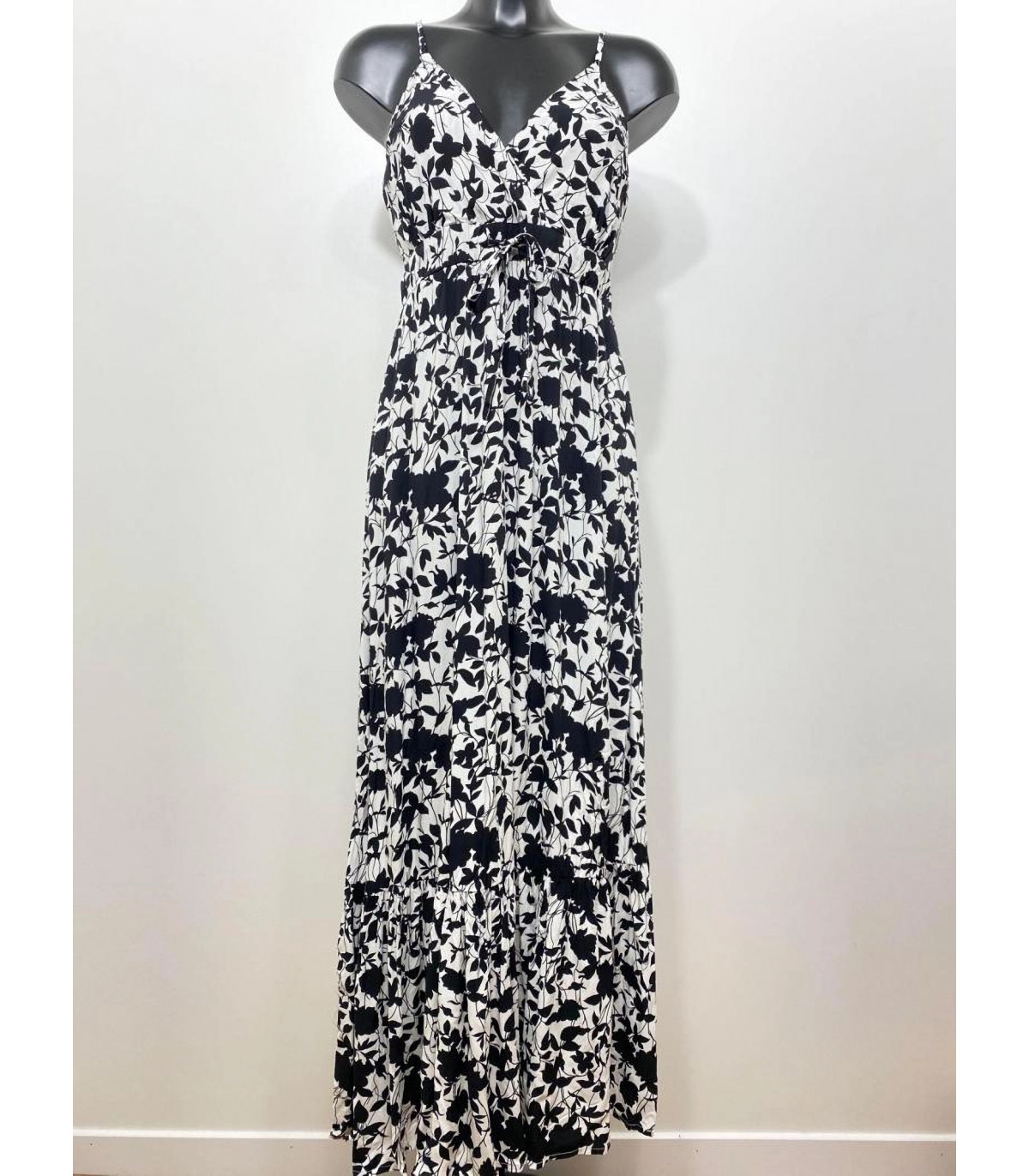 M&D:n pitkä kesämekko on tyylikäs ja monikäyttöinen valinta naiselle, joka arvostaa ajatonta eleganssia ja modernia muotia. Mustavalkoinen väritys tekee siitä monikäyttöisen vaatteen, joka sopii loistavasti moneen eri tilanteeseen. Naisellinen v-pääntie yhdistettynä pitkään helmaan tekee vaatteesta monille imartelevan. Säädettävät olkaimet varmistavat täydellisen istuvuuden. Joustava selkäresori tekee mekosta miellyttävän päällä. Mustavalkoinen maksimekko on ajaton vaate kesään.