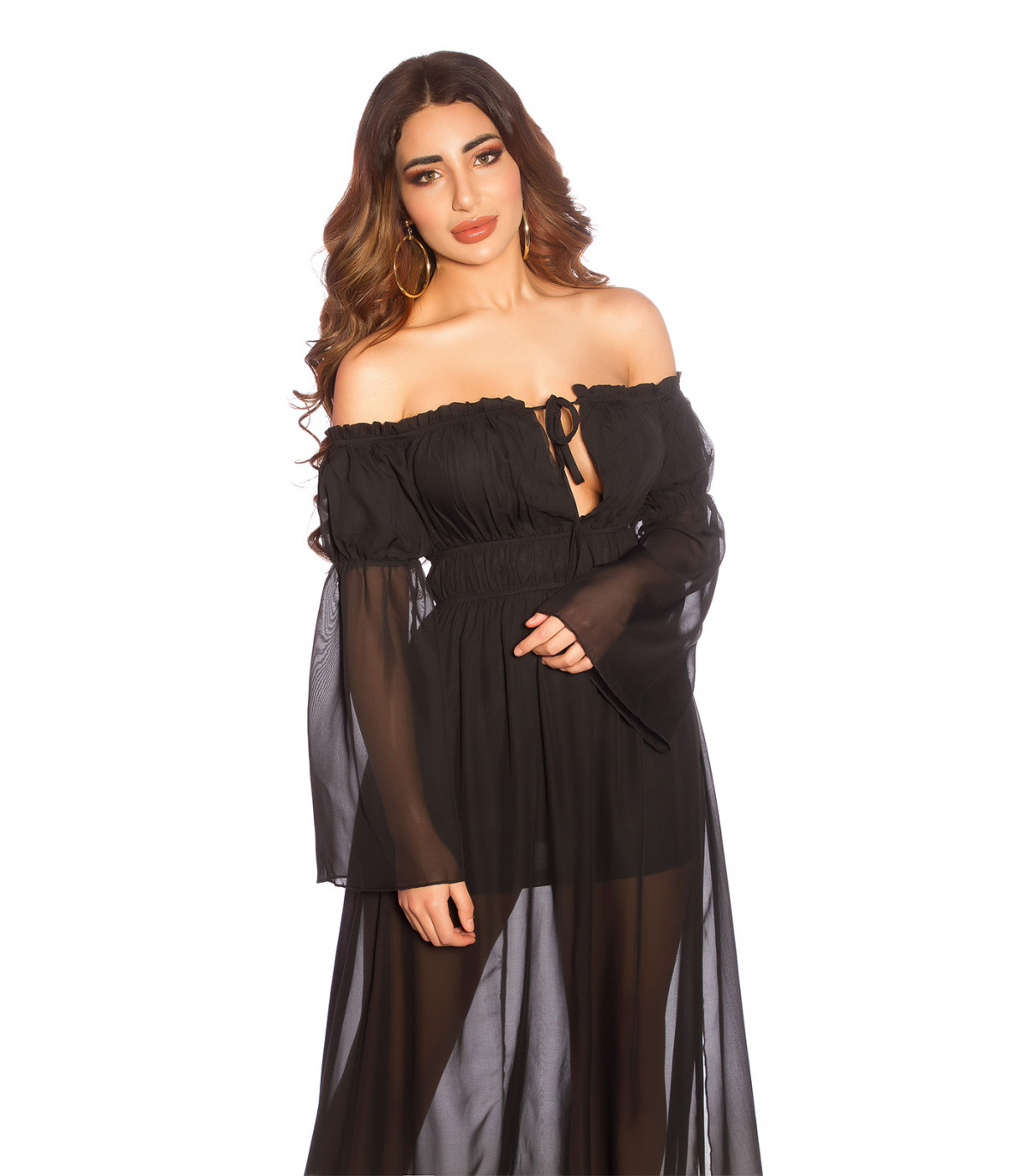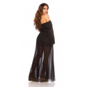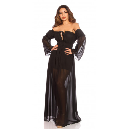 Musta pitkähihainen off-shoulder mesh-maksimekko