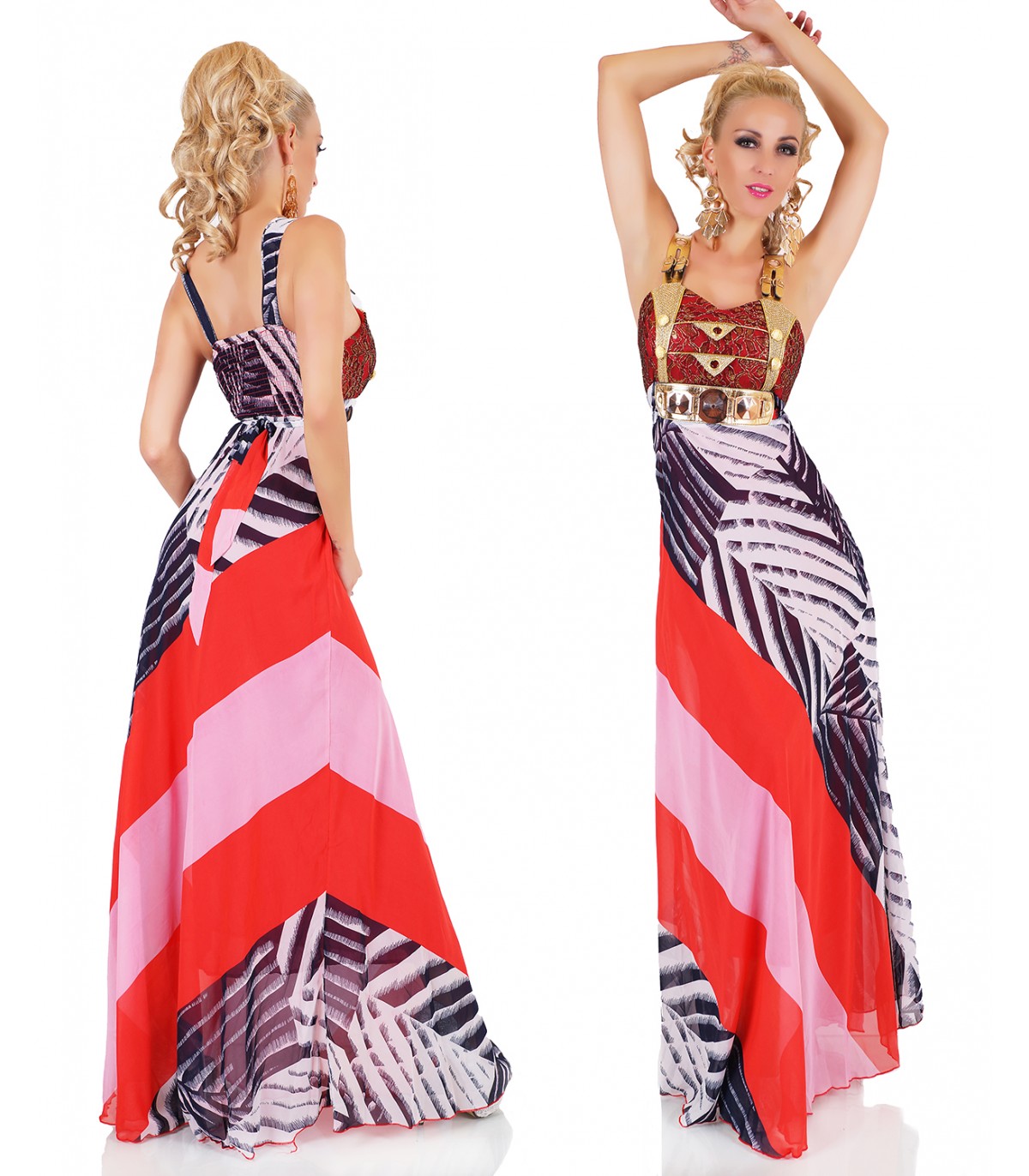 Punainen kuviollinen maksimekko koristeilla [LÖYTÖ]