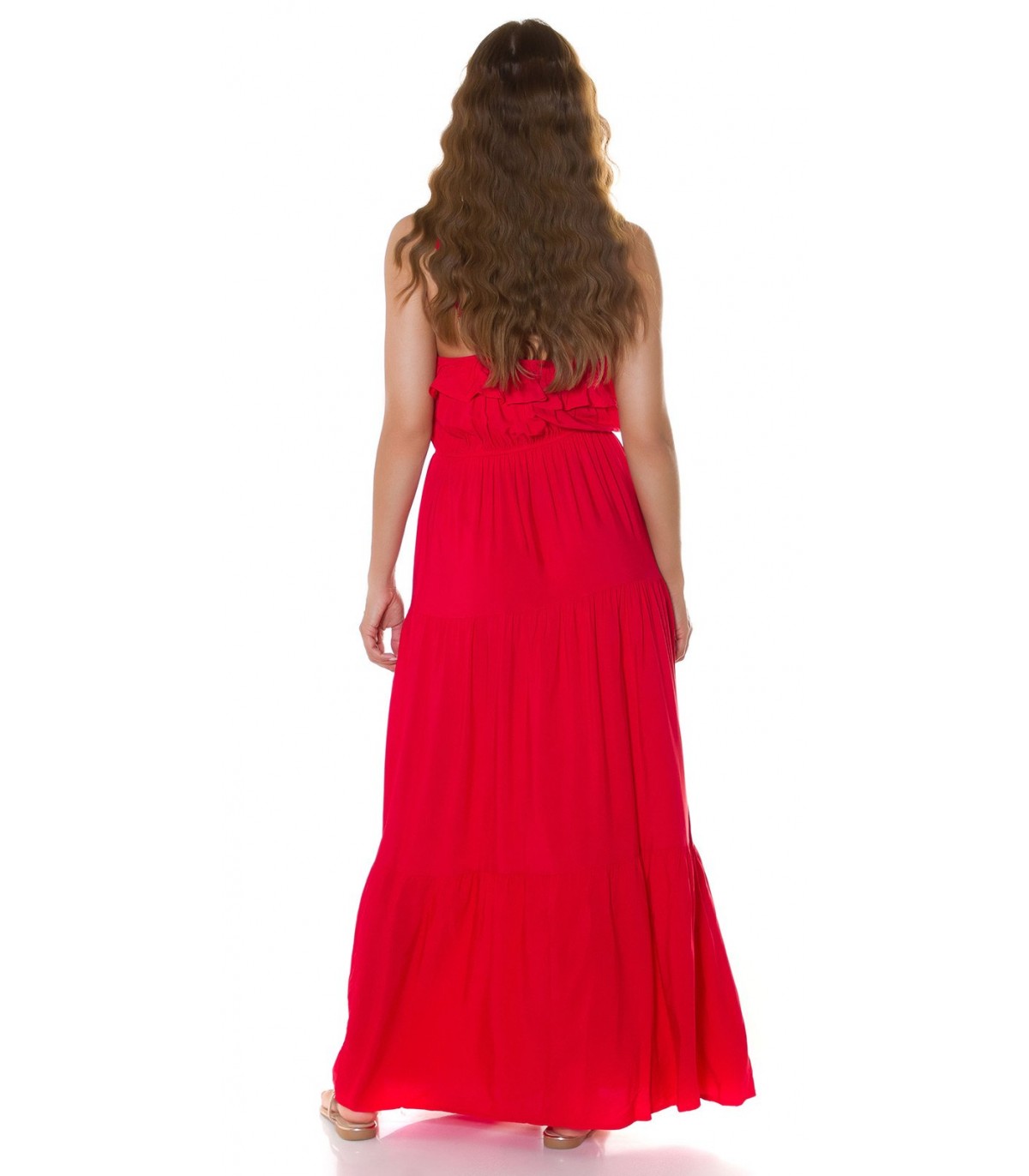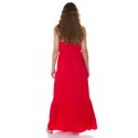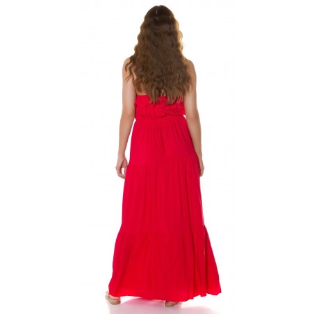 Punainen röyhelökoristeinen maksimekko