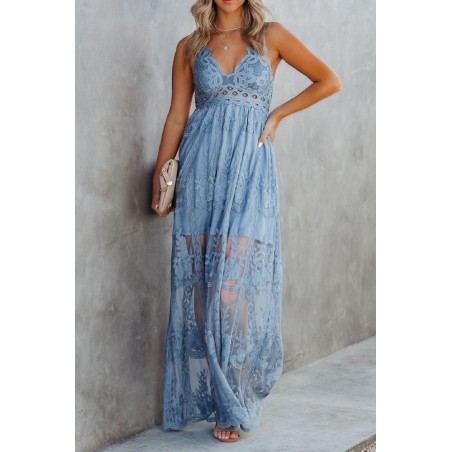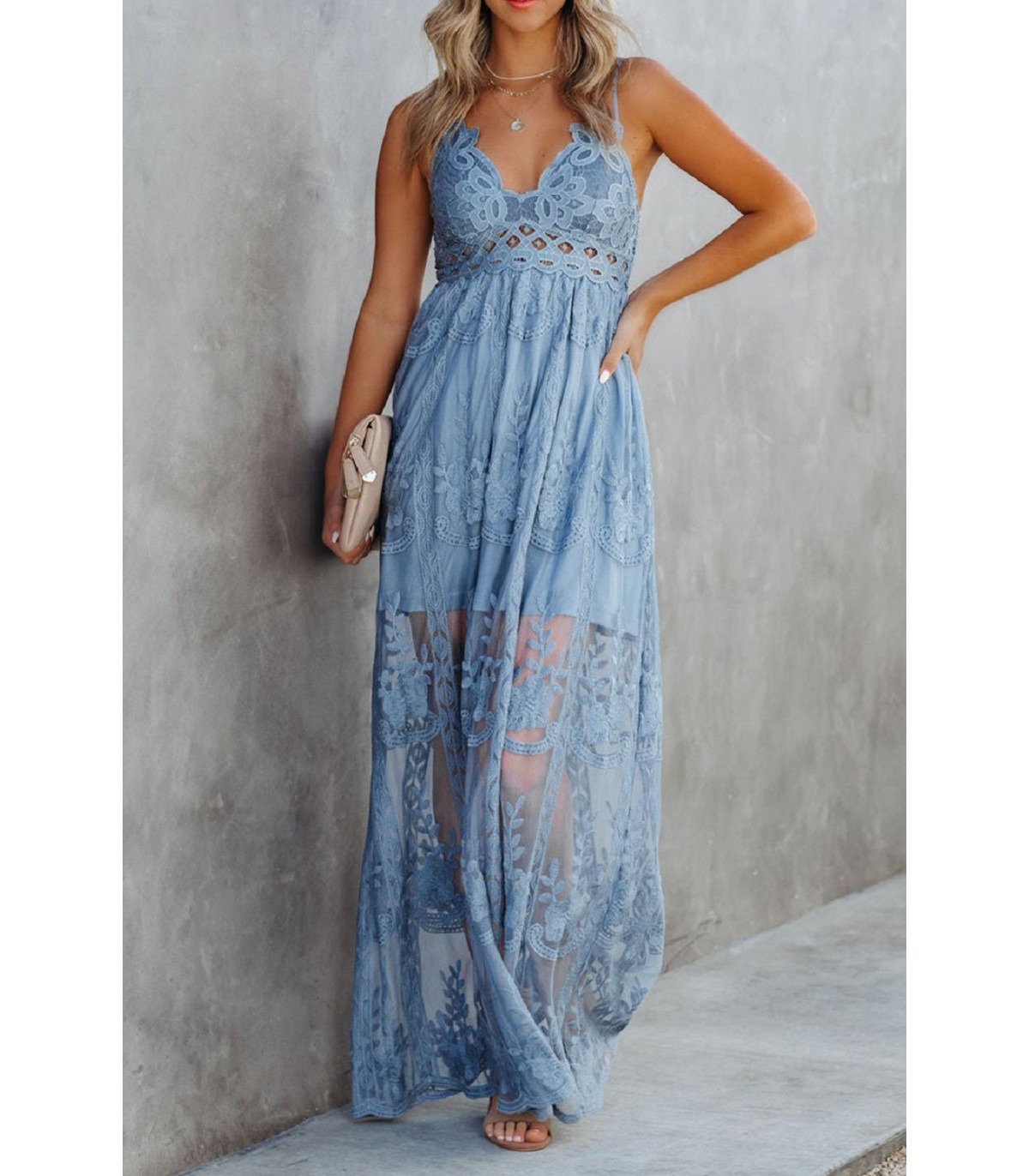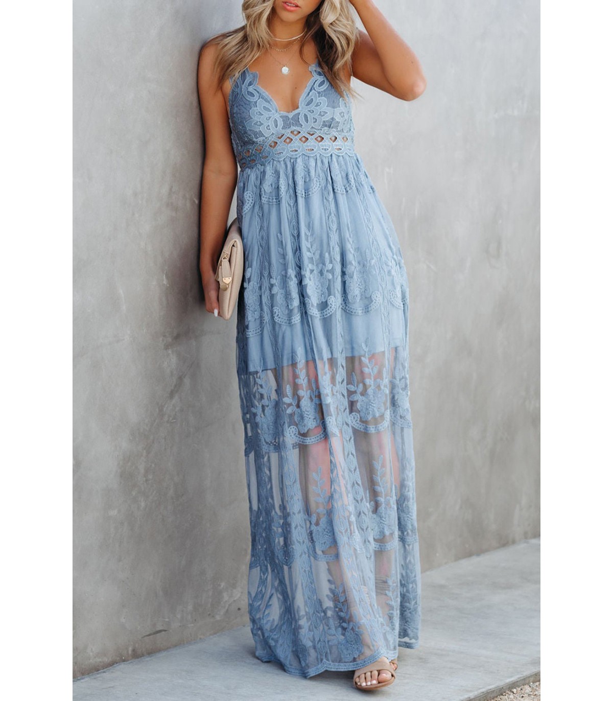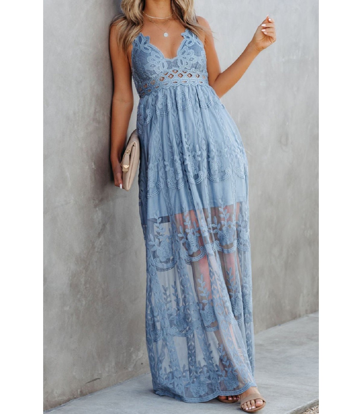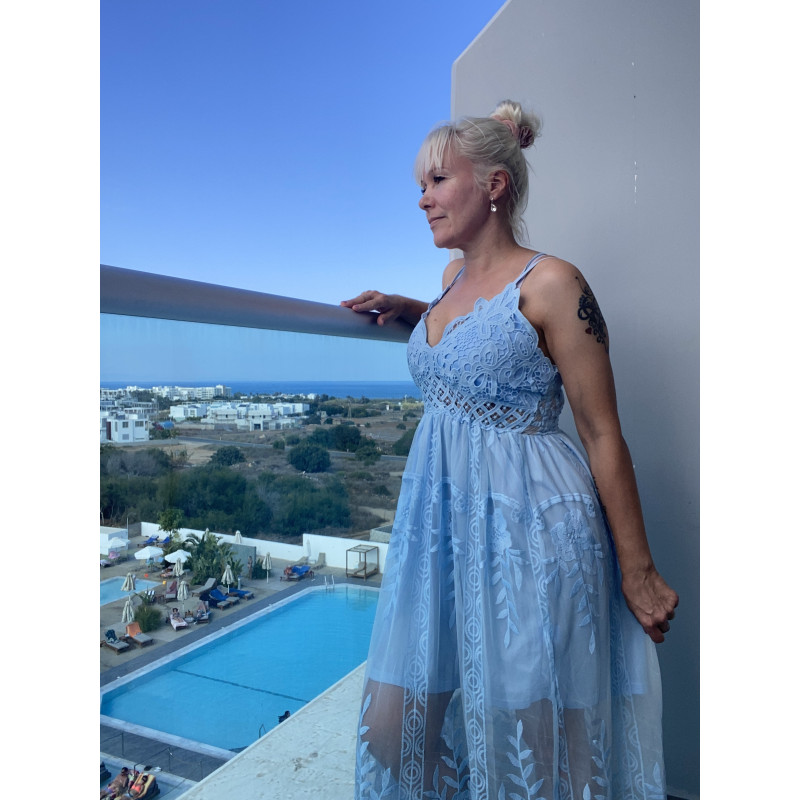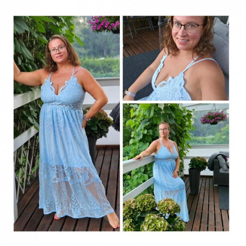 Plus de details Älä mieti liian pitkään - viimeinen kappale varastossa!Vaaleansininen pitsikirjailtu maksimekko