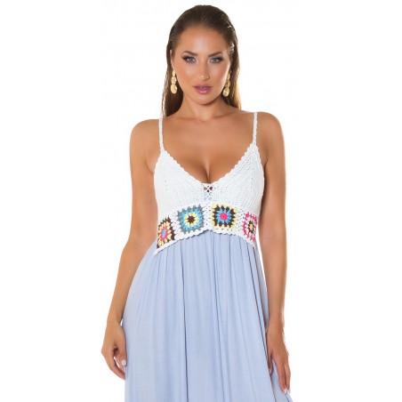 Vaikka yläosa on virkattua ja selässä rypytykset niin mekko on pehmeä. Ihana materiaali. Tykkään!