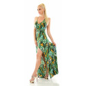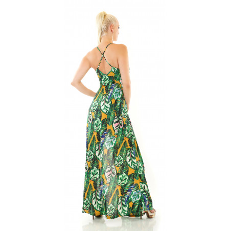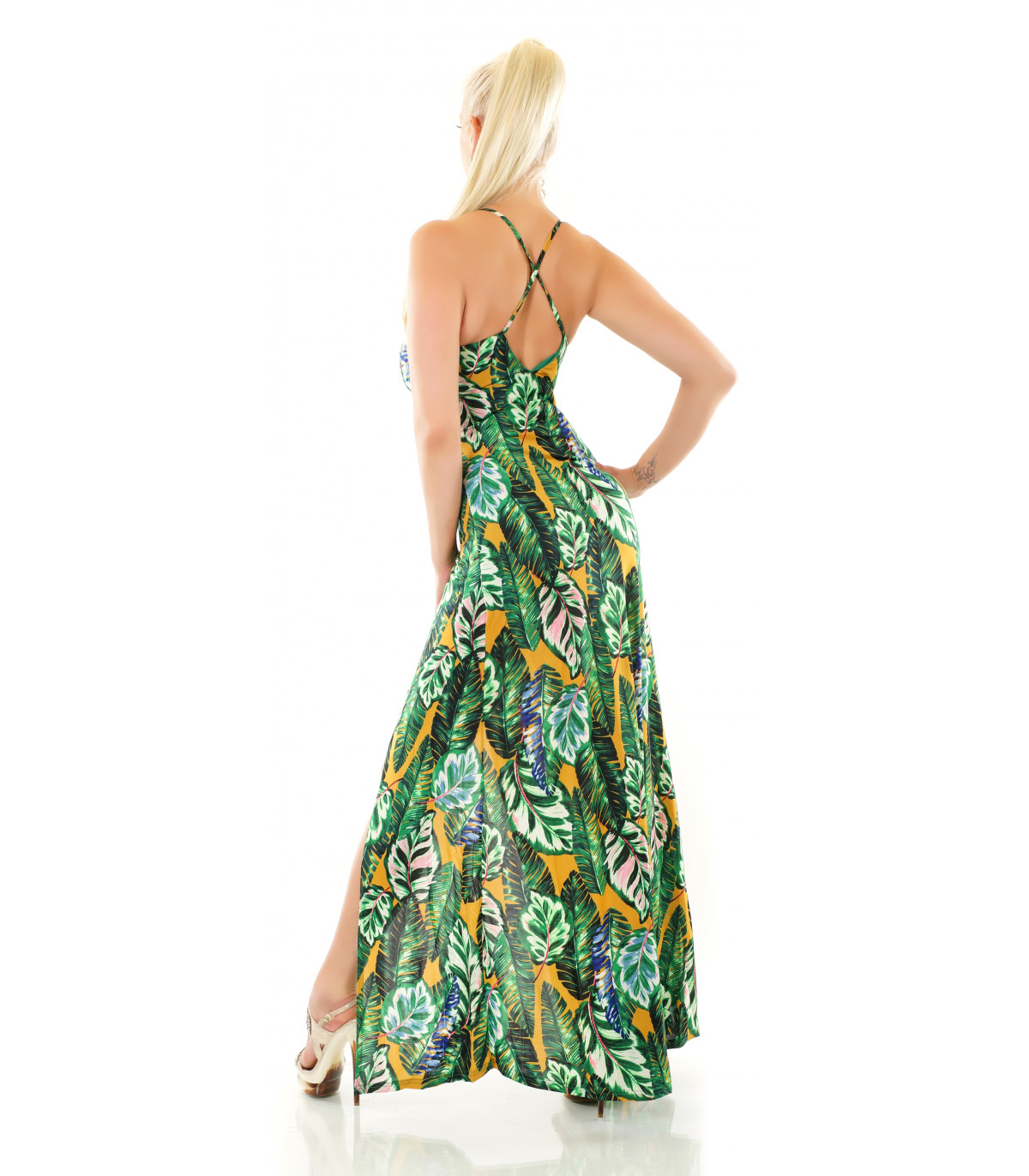 Vihreä lehtikuvioinen wrap-look v-maksimekko
