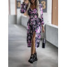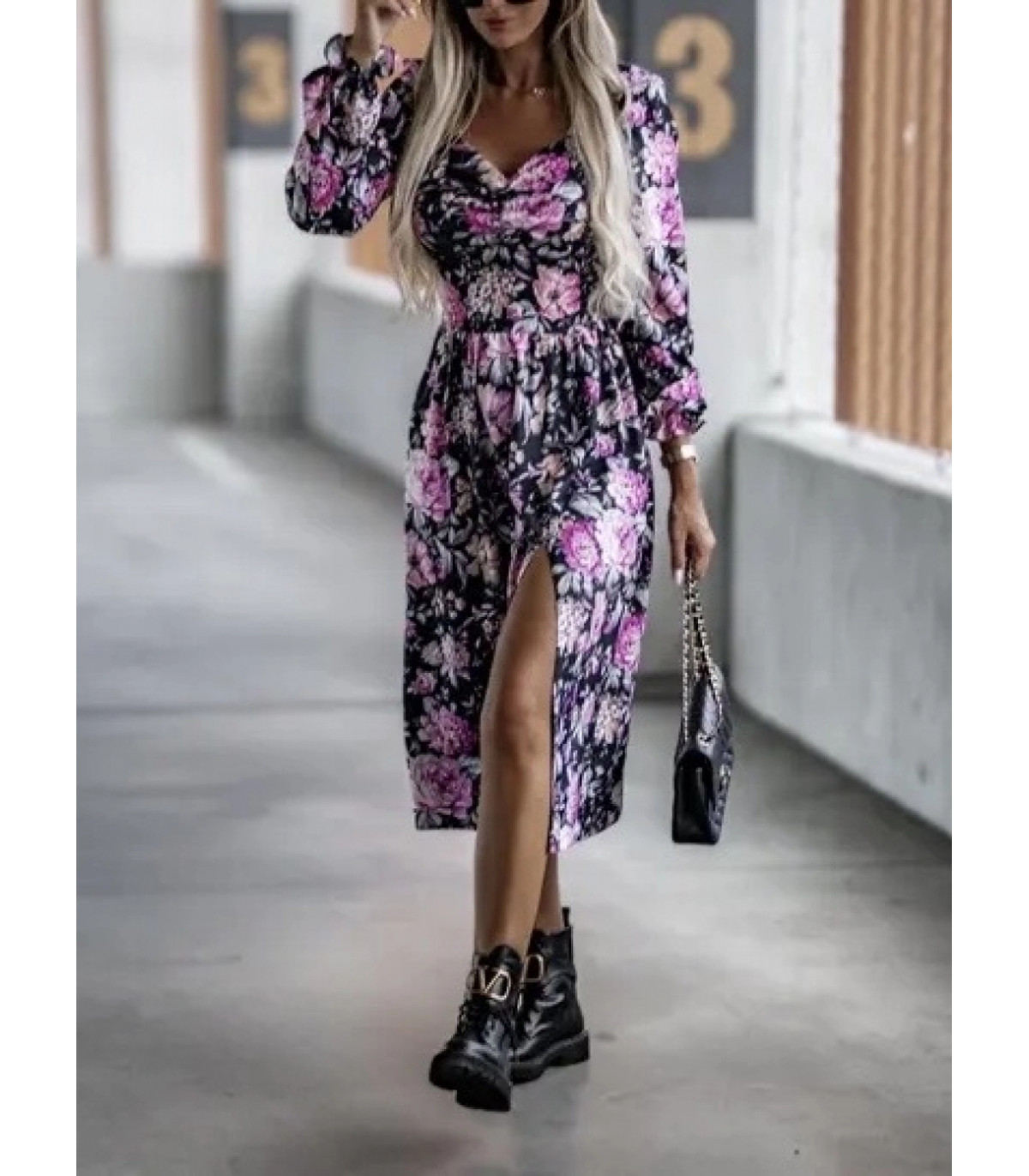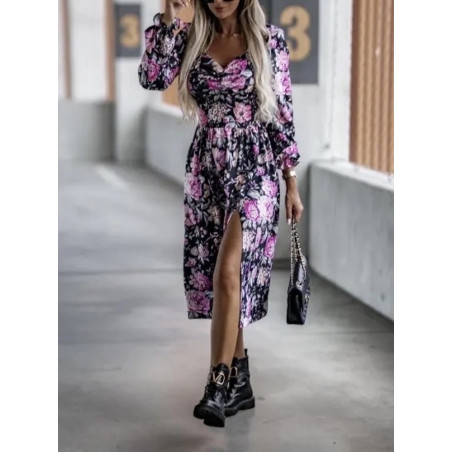 EB mustavioletti pitkähihainen kukkamekko halkiolla