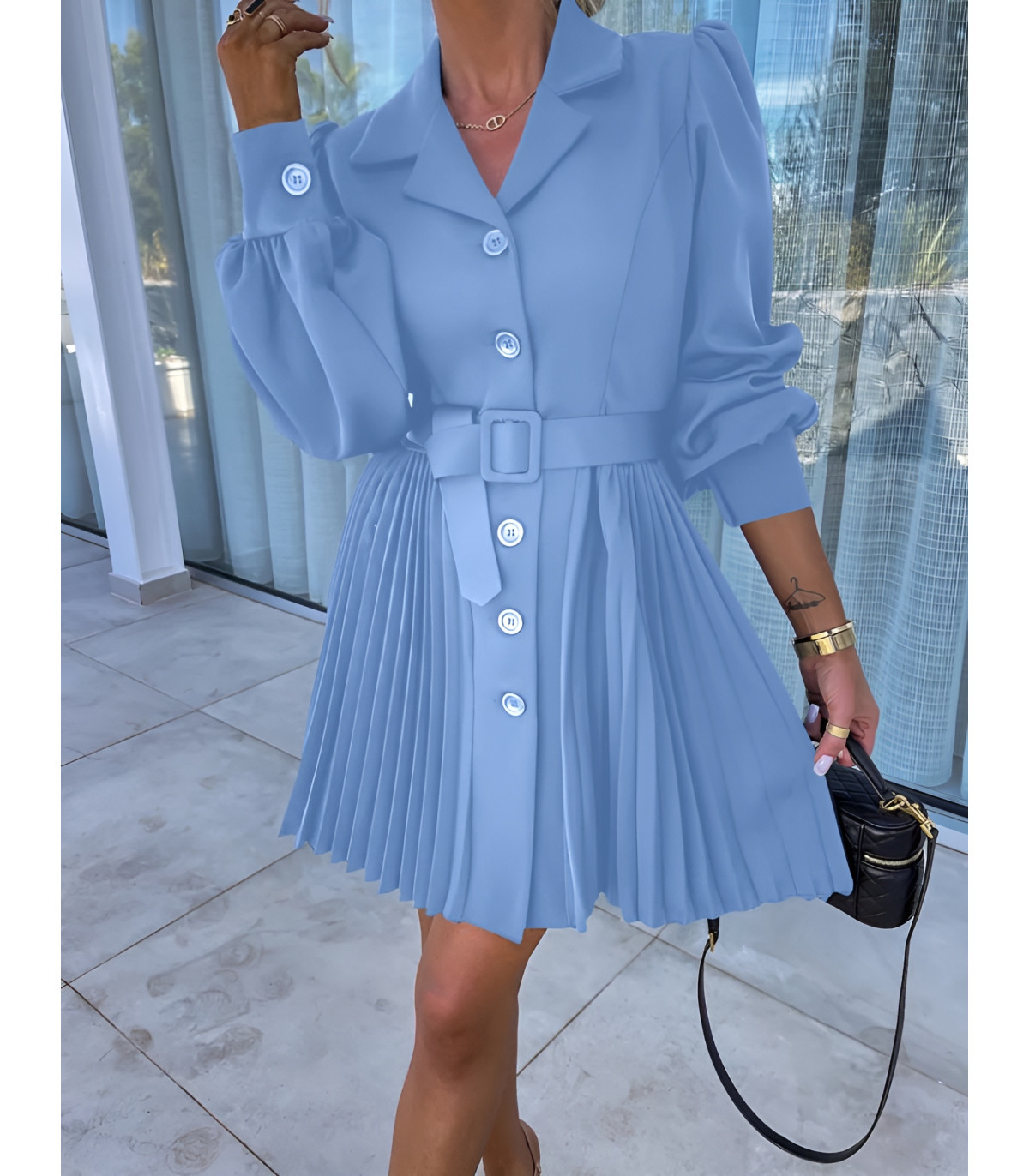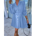 Tyylikäs takkimekko on vaate, jossa teet vaikutuksen. Ota mallia aikamme suurimmista tyyli-ikoneista ja pukeudu kuin kuninkaallinen - rikkomatta pankkia. Rosy Days:n vaaleansininen takkimekko vyöllä on ajaton klassikko ja välttämätön osa jokaisen tyylitietoisen naisen vaatekaappia. Tämä pitkähihainen lyhyt takkimekko vekkihelmalla yhdistää klassisen leikkauksen ja kauniin vaaleansinisen värin. Vyö korostaa kauniisti vartalosi naisellisia muotoja ja antaa mahdollisuuden muunnella mekon istuvuutta. Valmistettu laadukkaasta materiaalista, jota voit kantaa ylpeänä.