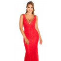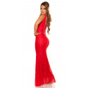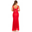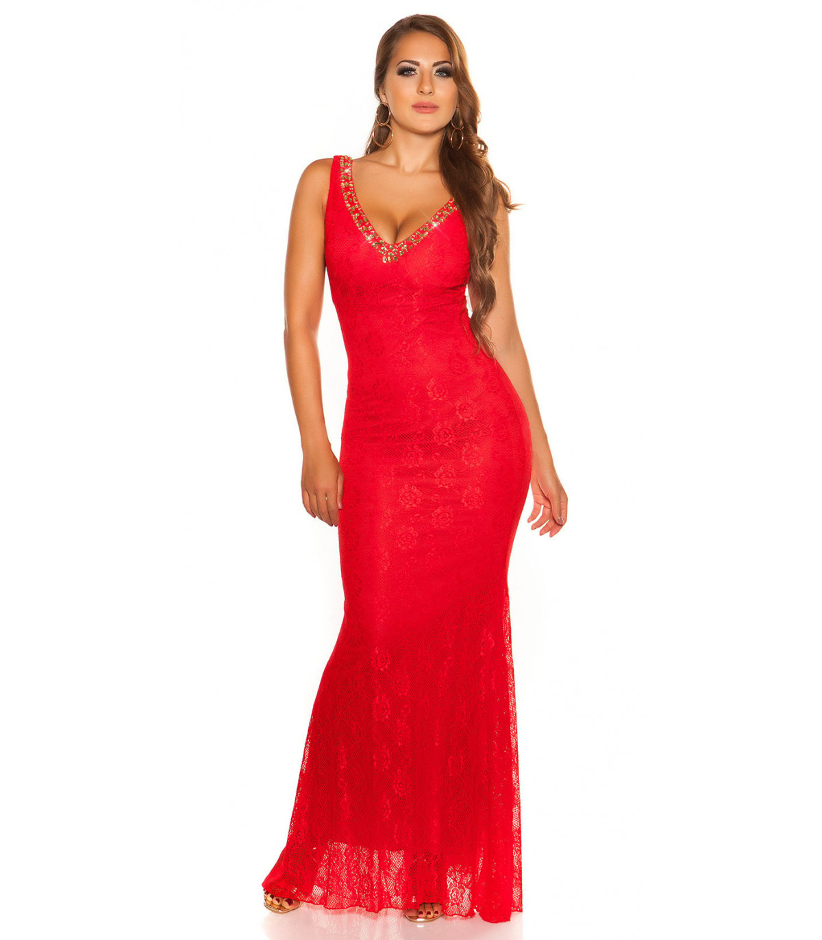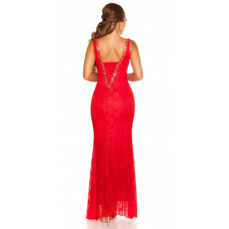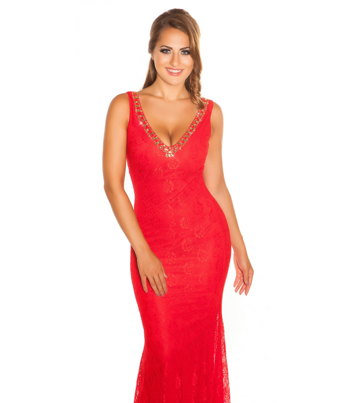 Koucla punainen pitsinen pitkä mekko koristeilla