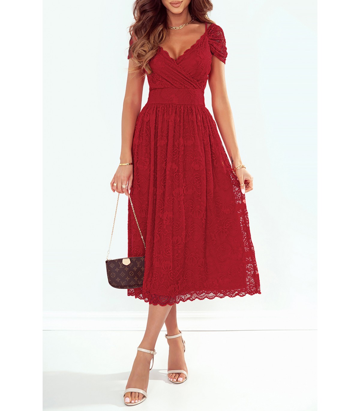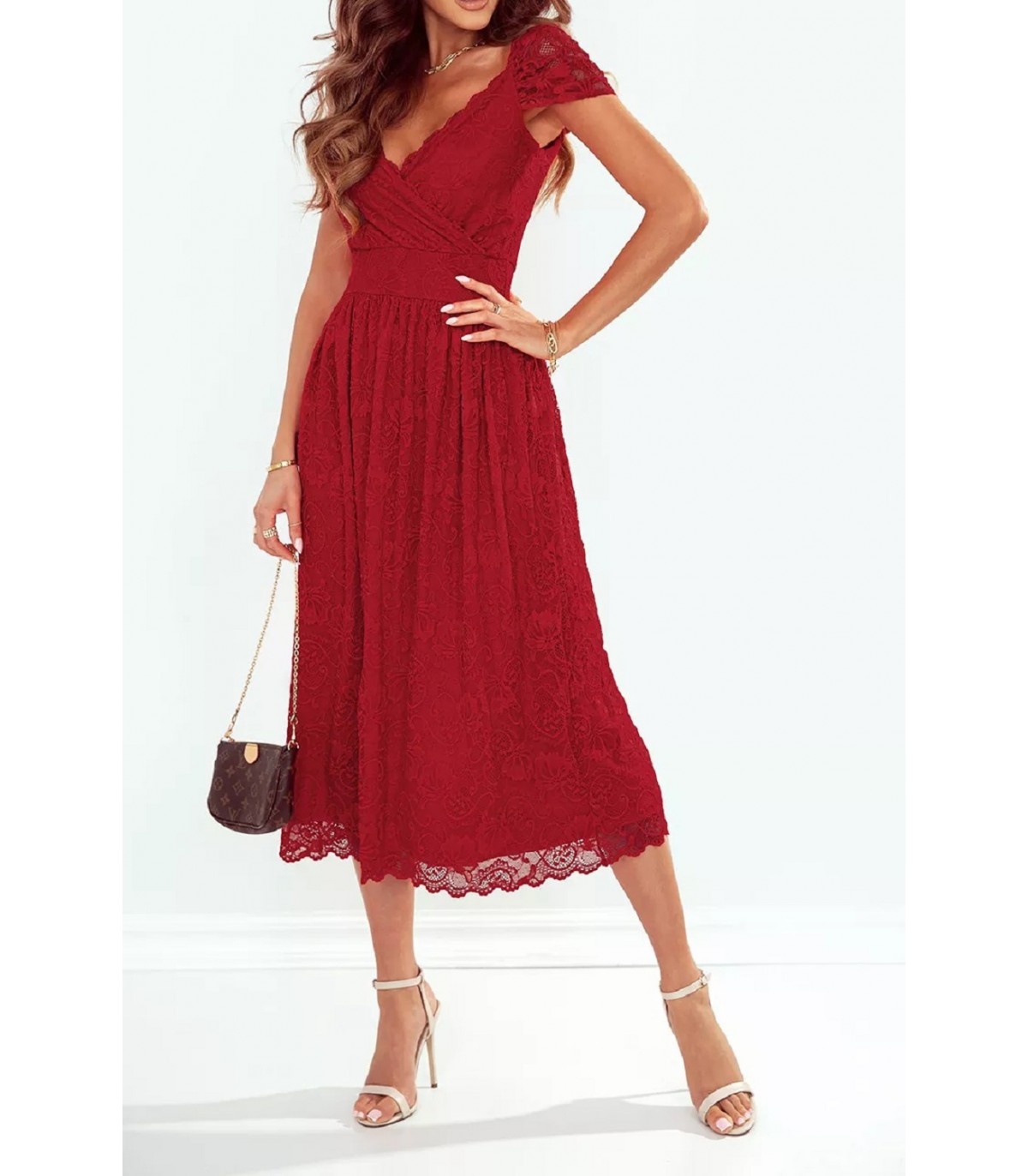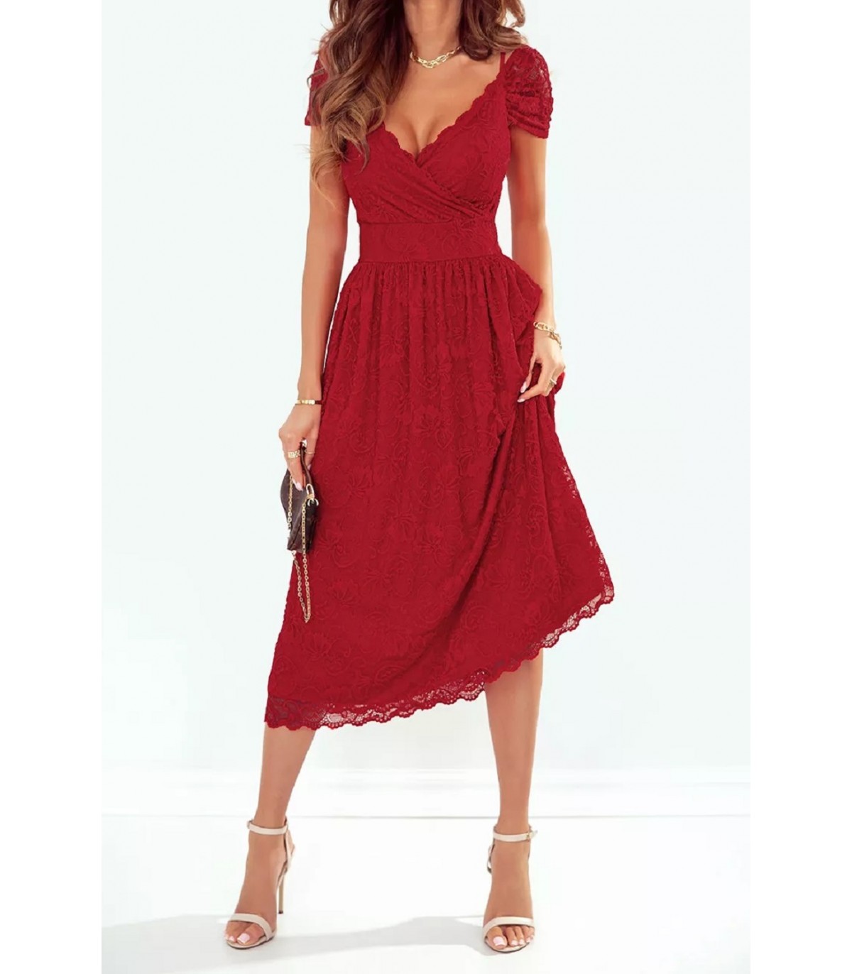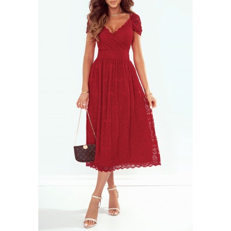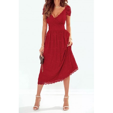Punainen wrap-look v-pitsimidimekko