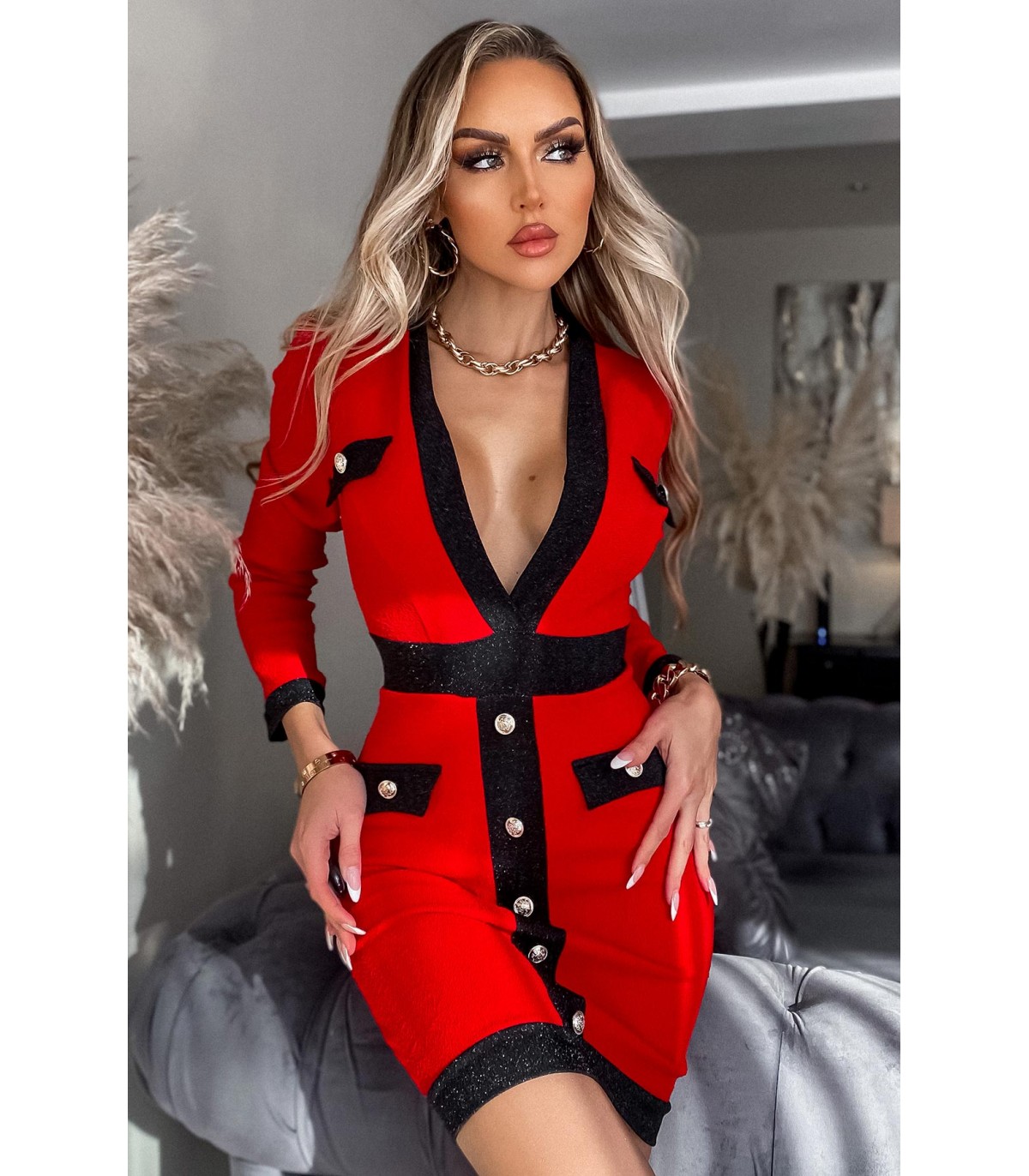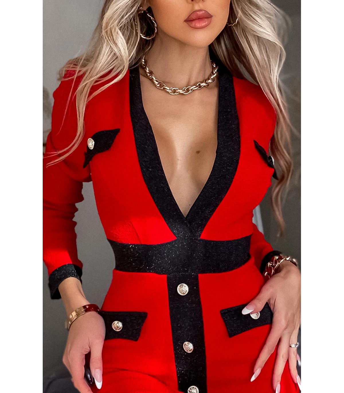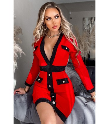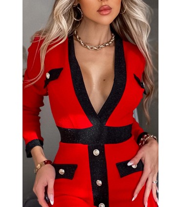 CW Kalista punainen nappikoristeinen v-mekko