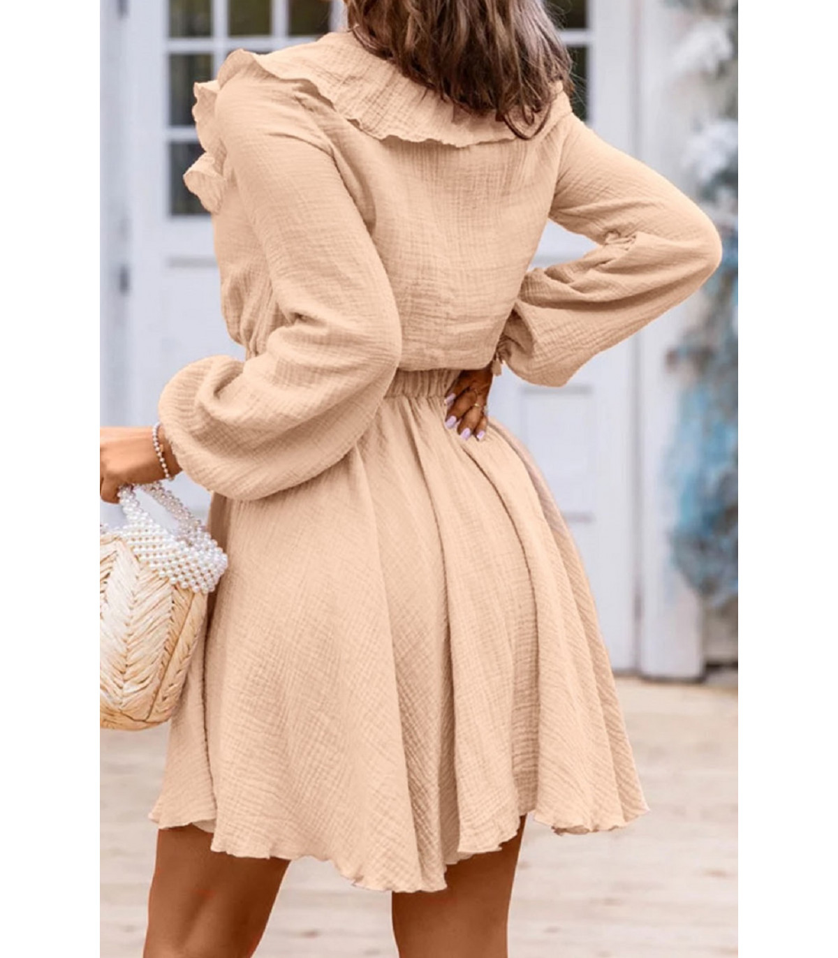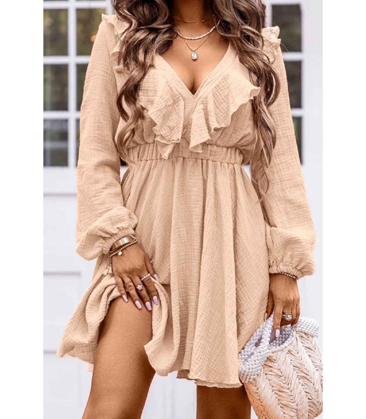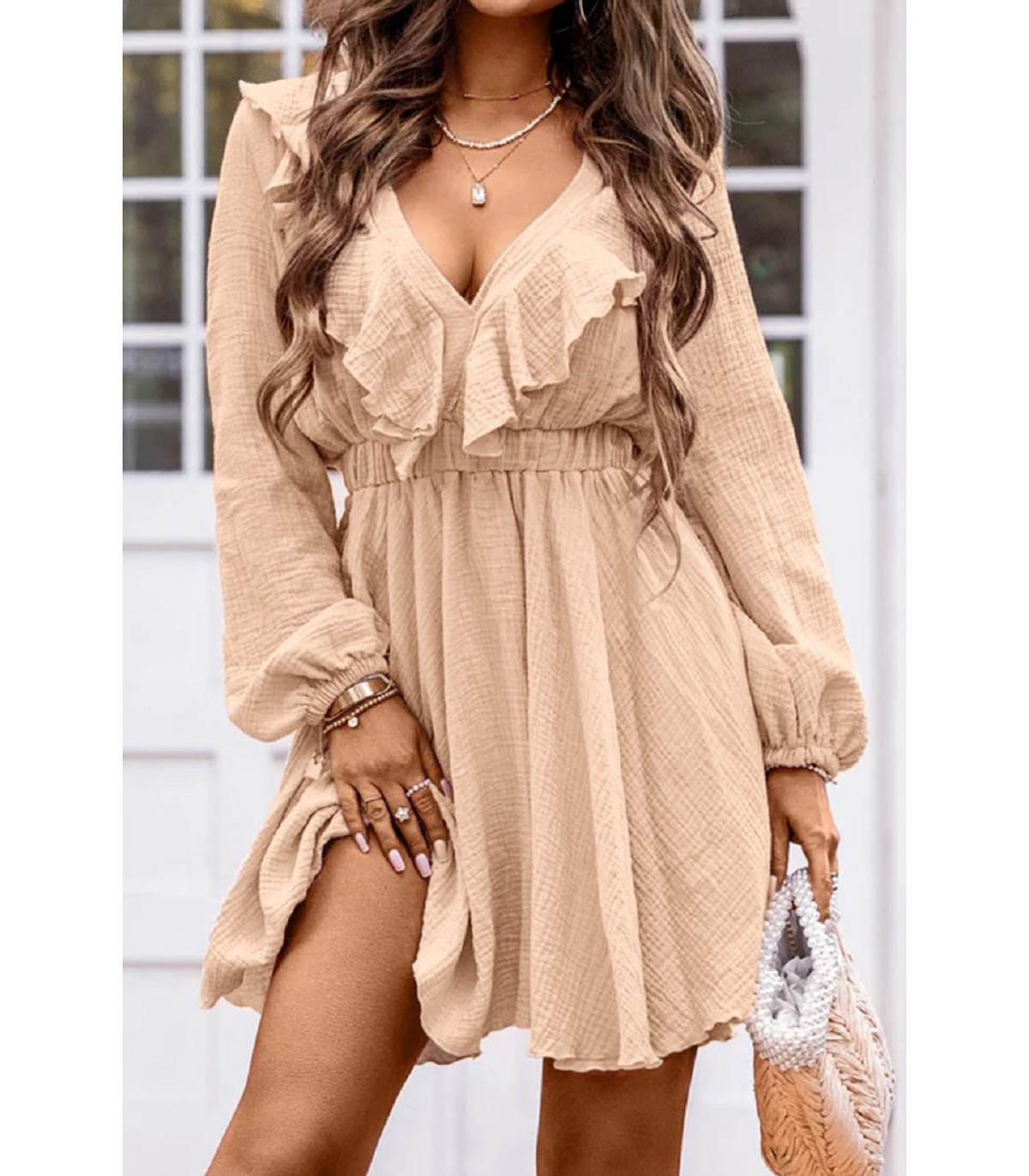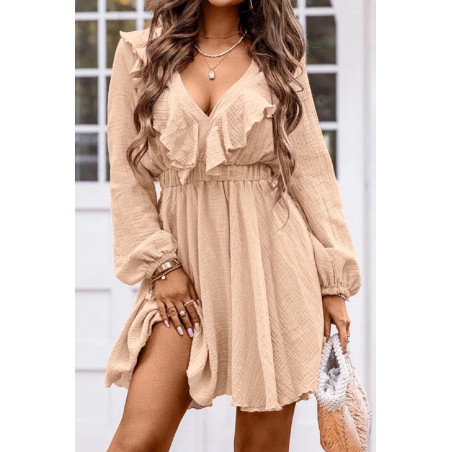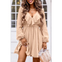 Plus de details Valittu koko loppu varastostaKhaki pitkähihainen v-mekko pussihihoilla ja röyhelöllä