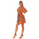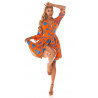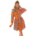 Oranssisininen kukkakuvioinen wrap-look v-mekko